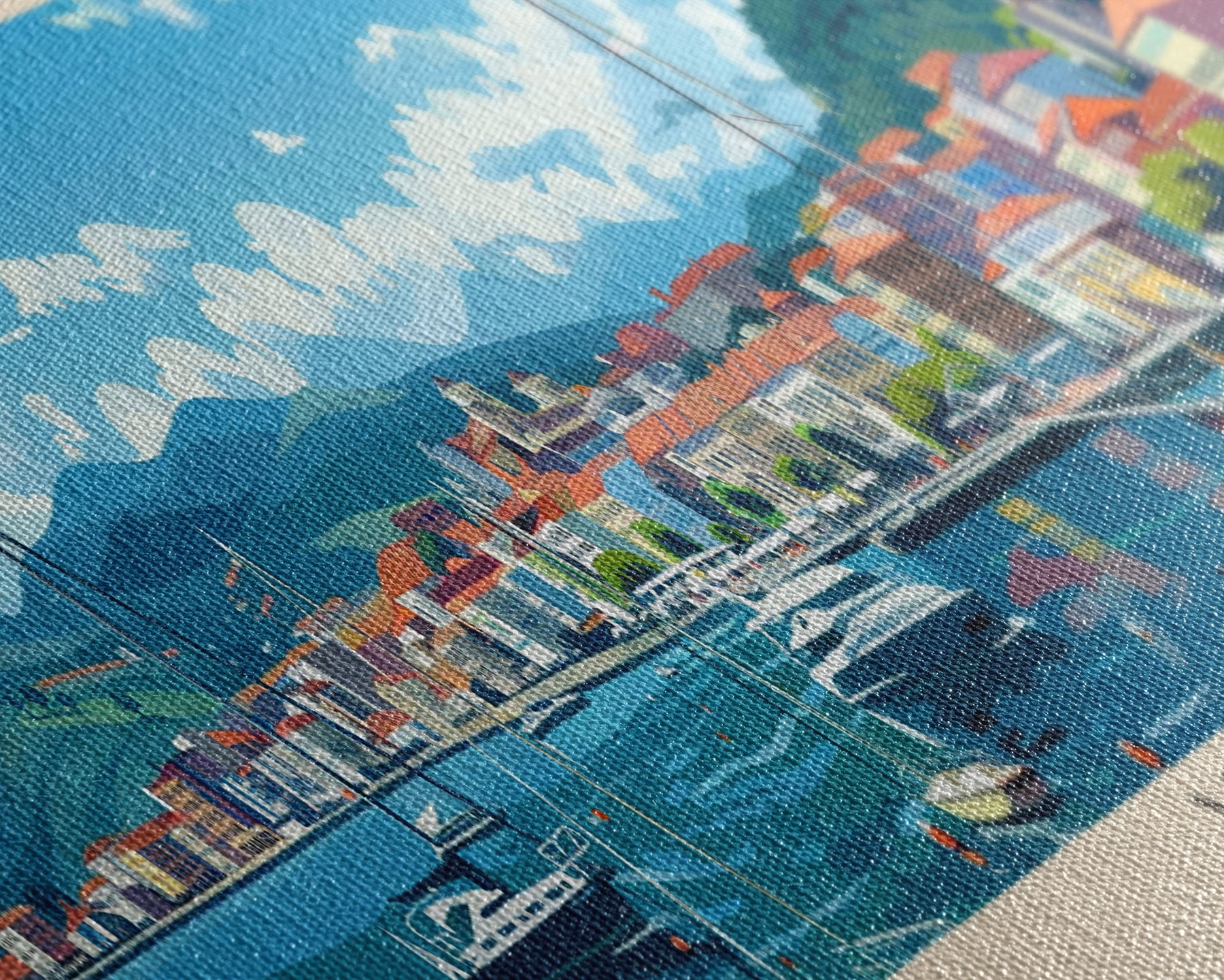 Most of our canvases are made in the USA, with the exception of canvases ordered with the light oak unstained frames, and any large canvases (24x48, 30x60, 16x48 and 20x60) ordered WITH a frame. These are temporarily made in and shipped from Europe, while we try to find a more consistent supplier in the USA.