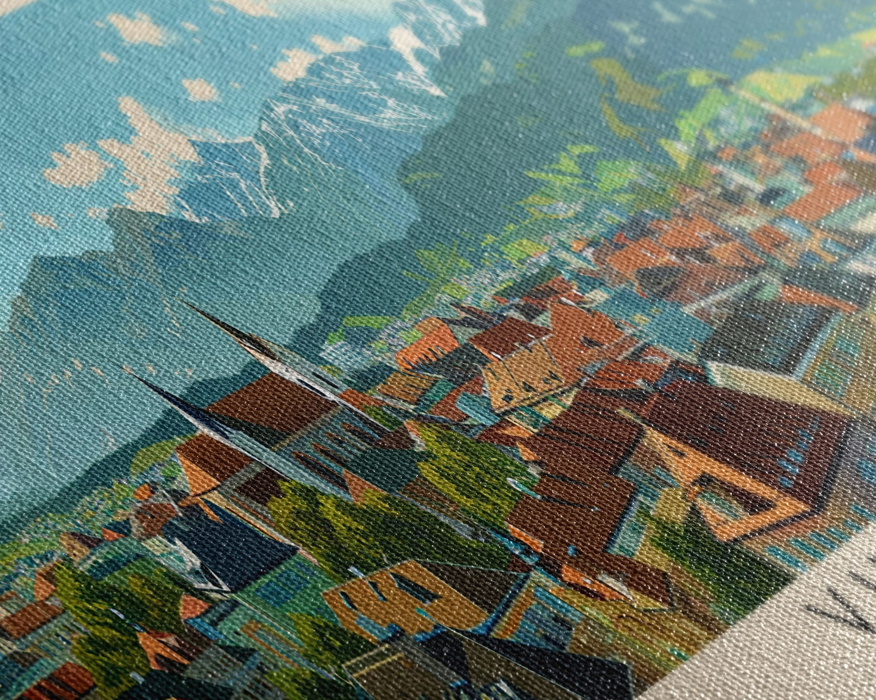 Most of our canvases are made in the USA, with the exception of canvases ordered with the light oak unstained frames, and any large canvases (24x48, 30x60, 16x48 and 20x60) ordered WITH a frame. These are temporarily made in and shipped from Europe, while we try to find a more consistent supplier in the USA.