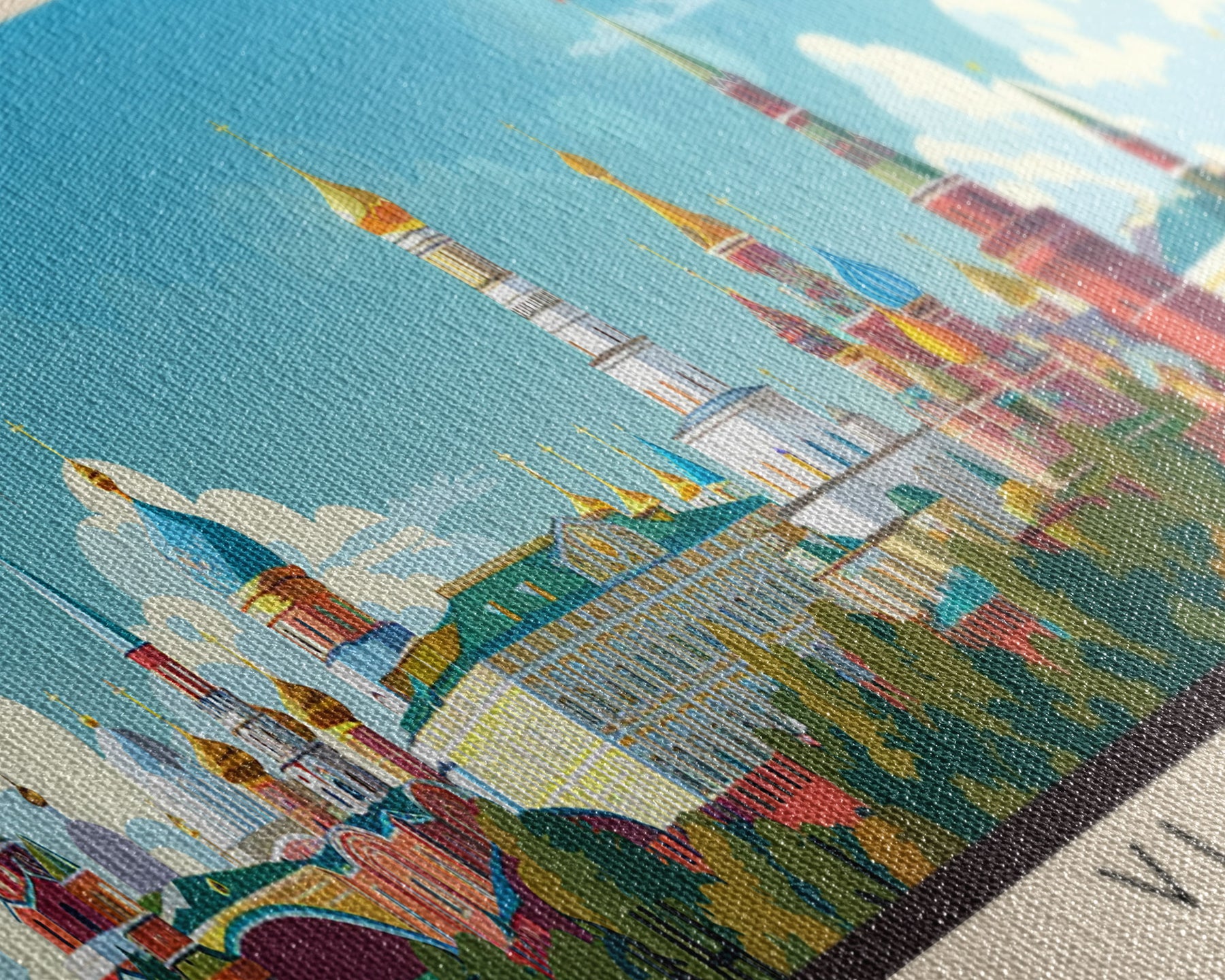 Most of our canvases are made in the USA, with the exception of canvases ordered with the light oak unstained frames, and any large canvases (24x48, 30x60, 16x48 and 20x60) ordered WITH a frame. These are temporarily made in and shipped from Europe, while we try to find a more consistent supplier in the USA.