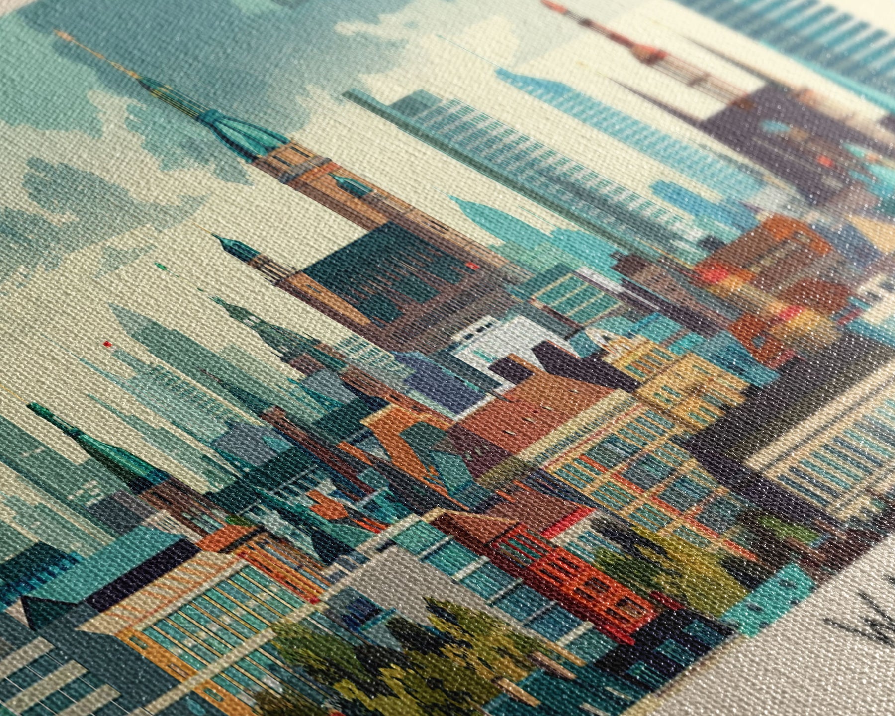 Warsaw Poland Travel Art, City Art, Framed Canvas Print or Metal Wall Art, Europe Travel Poster, Panoramic Wall Art, Extra Wide Wall Art