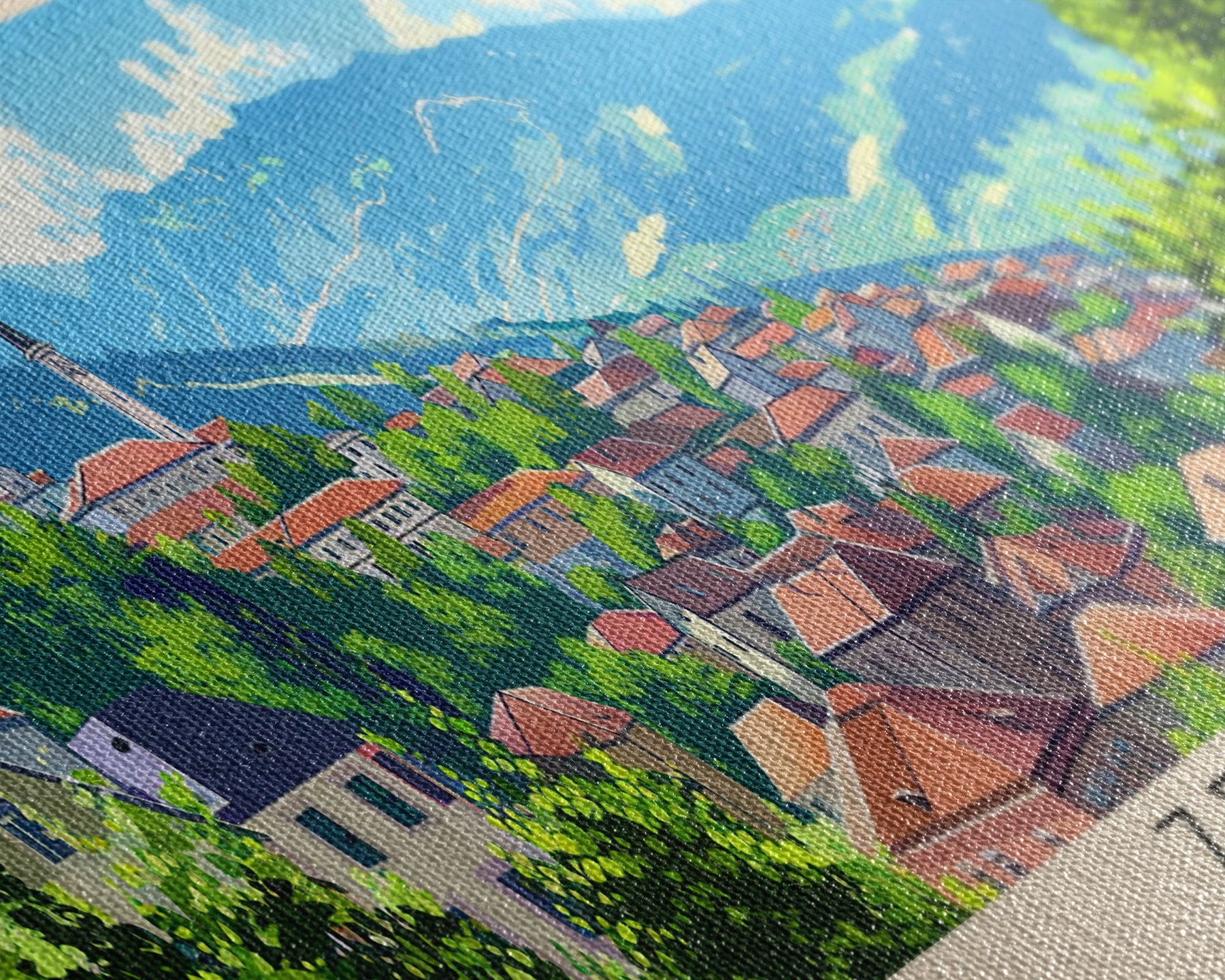 Most of our canvases are made in the USA, with the exception of canvases ordered with the light oak unstained frames, and any large canvases (24x48, 30x60, 16x48 and 20x60) ordered WITH a frame. These are temporarily made in and shipped from Europe, while we try to find a more consistent supplier in the USA.