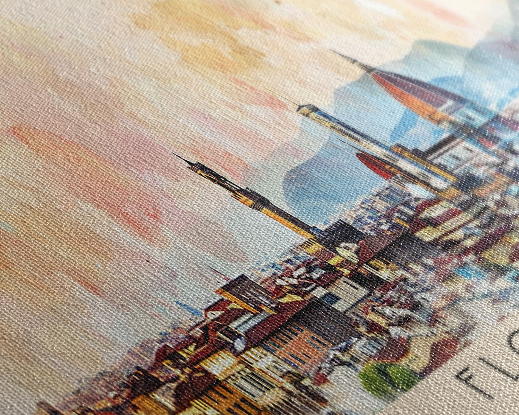 Most of our canvases are made in the USA, with the exception of canvases ordered with the light oak unstained frames, and any large canvases (24x48, 30x60, 16x48 and 20x60) ordered WITH a frame. These are temporarily made in and shipped from Europe, while we try to find a more consistent supplier in the USA.