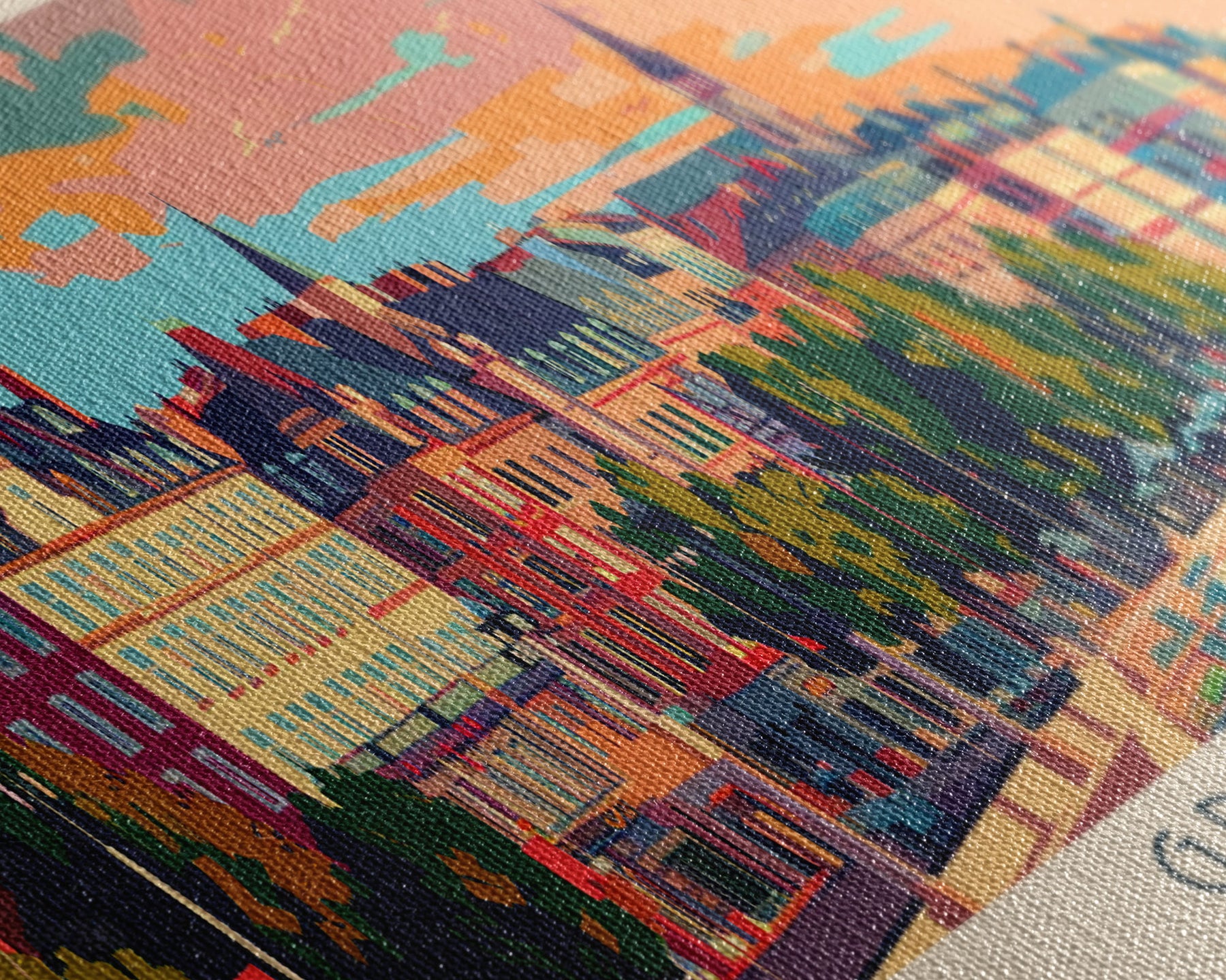Hello and thank you for taking the time to view our modern high quality giclée artwork! We offer both posters and stretched canvas prints. Our posters are printed on Ultra Matte 60 lb / 230 GSM high quality photo paper, with a thickness of 10 mil. Our canvases are printed on museum grade 350 GSM canvas material with ECO friendly archival grade ink, then hand stretched and stapled over premium, FSC certified and shrink resistant frames. Designed and built to last a lifetime.