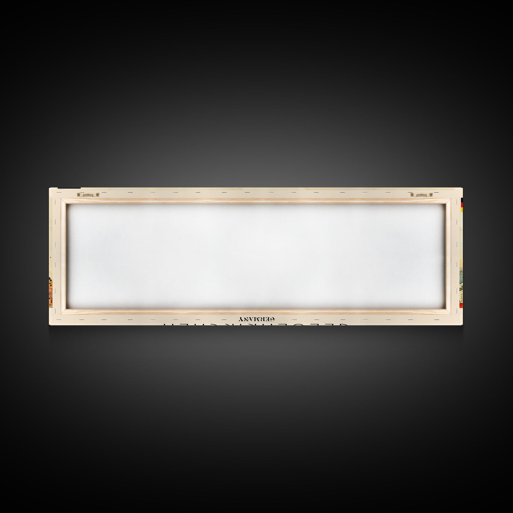 Most of our canvases are made in the USA, with the exception of canvases ordered with the light oak unstained frames, and any large canvases (24x48, 30x60, 16x48 and 20x60) ordered WITH a frame. These are temporarily made in and shipped from Europe, while we try to find a more consistent supplier in the USA.