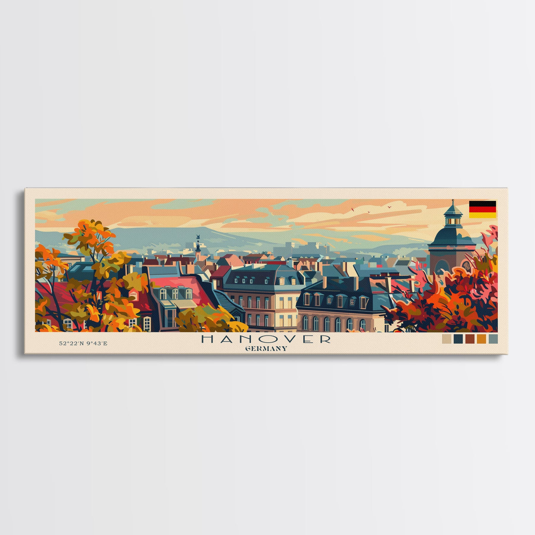 Hanover Germany Panoramic Travel Poster, Framed Canvas Print or Metal Wall Art, Travel Art, Home Decor, Panoramic Painting, Midcentury Art