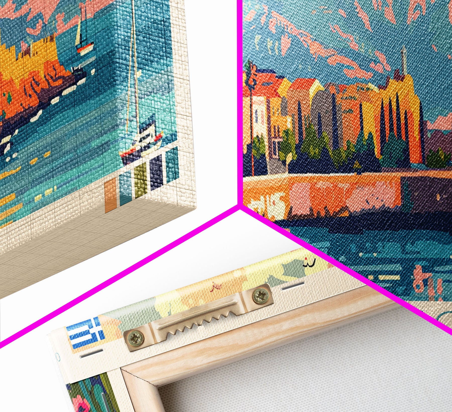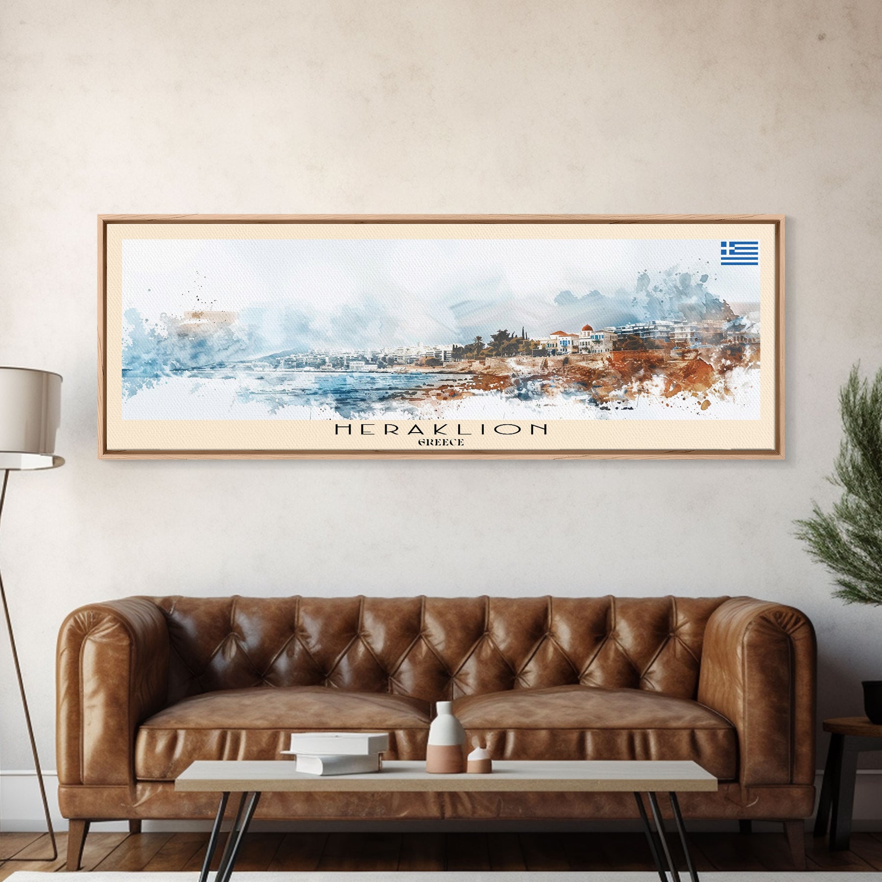 Heraklion Greece Panoramic Travel Poster, Framed Canvas Print or Metal Wall Art, Travel Art, Home Decor, Panoramic Painting, Midcentury Art