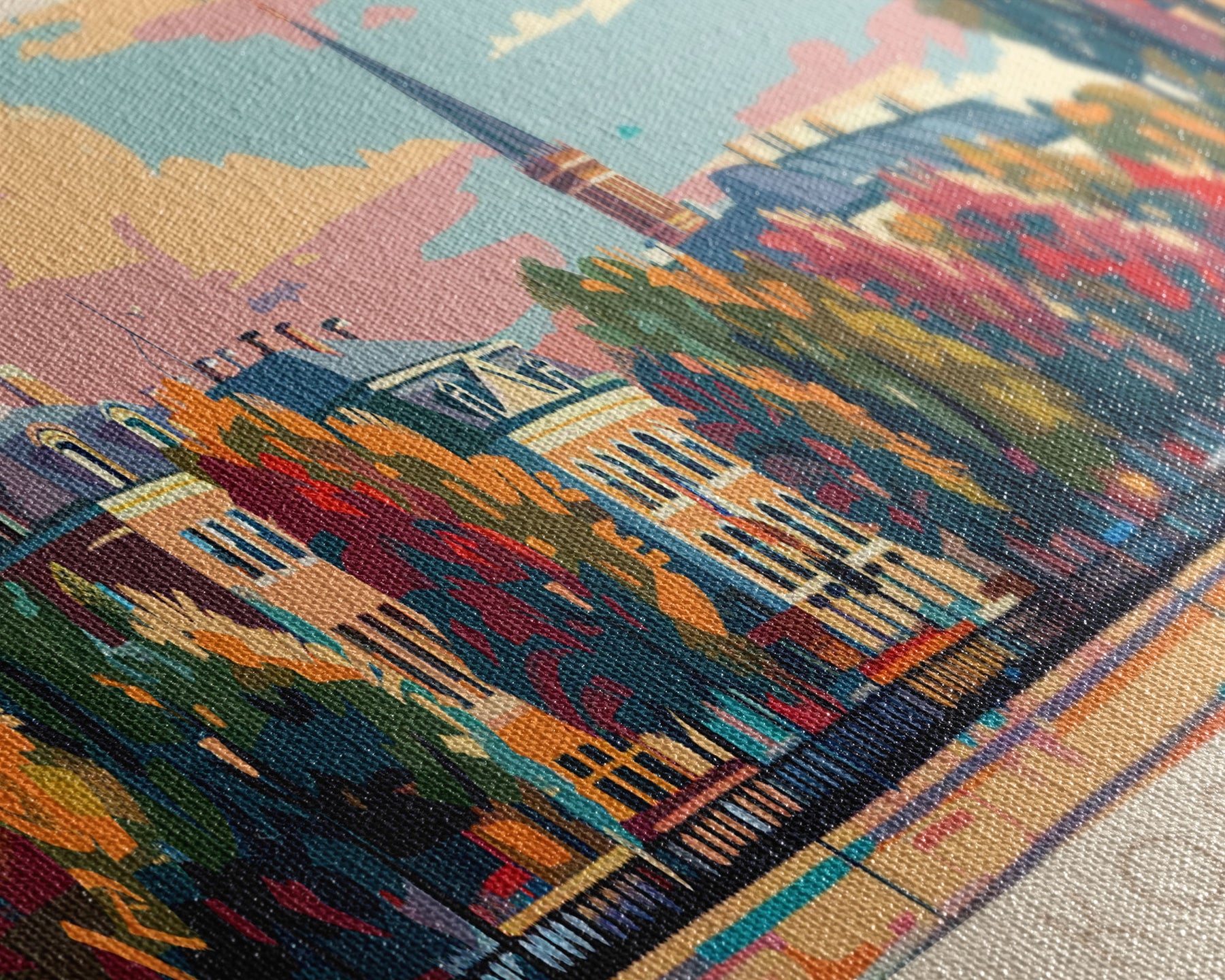 Most of our canvases are made in the USA, with the exception of canvases ordered with the light oak unstained frames, and any large canvases (24x48, 30x60, 16x48 and 20x60) ordered WITH a frame. These are temporarily made in and shipped from Europe, while we try to find a more consistent supplier in the USA.