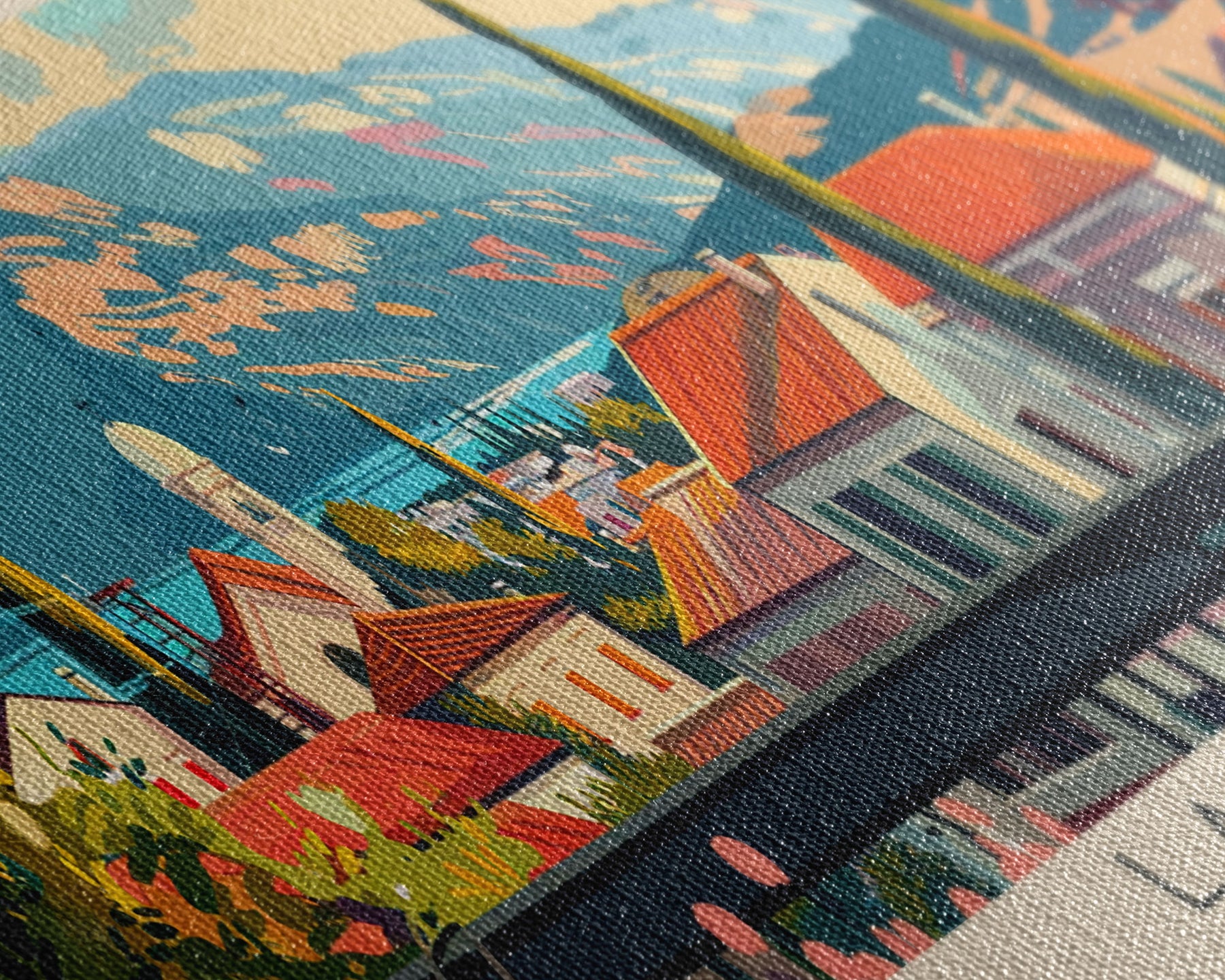 Most of our canvases are made in the USA, with the exception of canvases ordered with the light oak unstained frames, and any large canvases (24x48, 30x60, 16x48 and 20x60) ordered WITH a frame. These are temporarily made in and shipped from Europe, while we try to find a more consistent supplier in the USA.