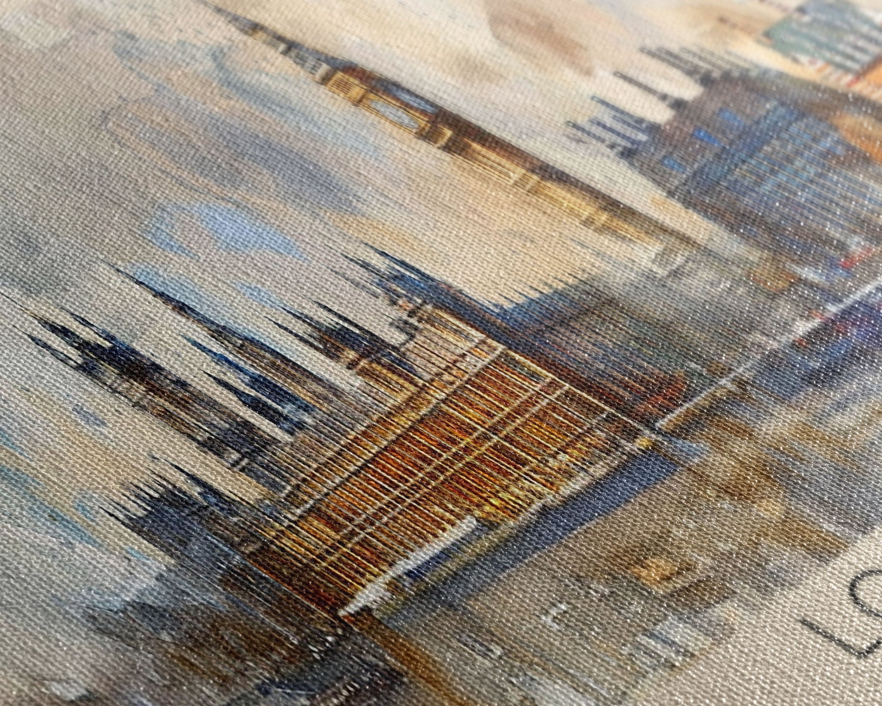 Most of our canvases are made in the USA, with the exception of canvases ordered with the light oak unstained frames, and any large canvases (24x48, 30x60, 16x48 and 20x60) ordered WITH a frame. These are temporarily made in and shipped from Europe, while we try to find a more consistent supplier in the USA.