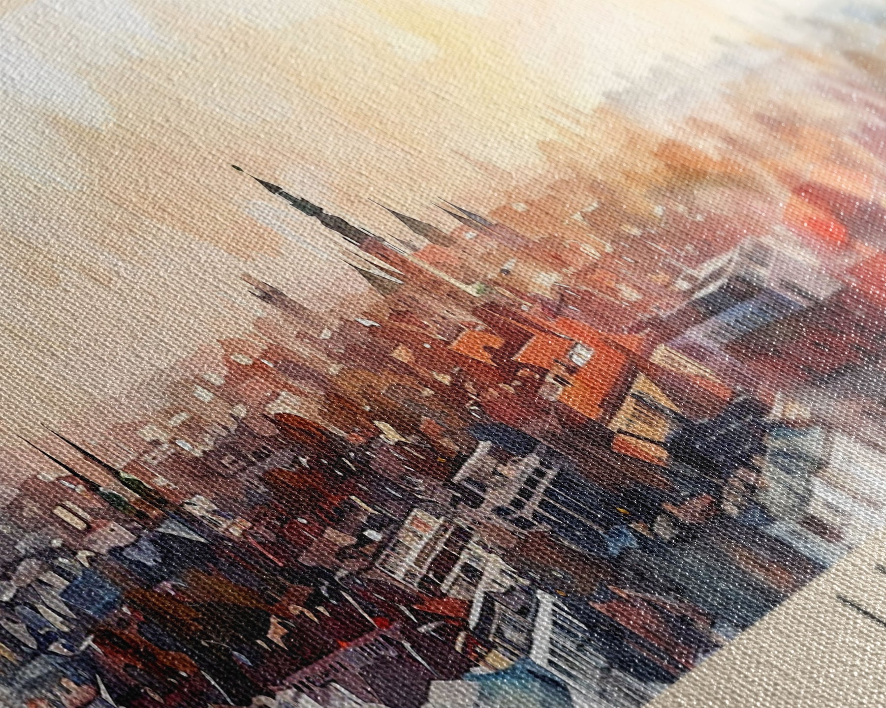 Most of our canvases are made in the USA, with the exception of canvases ordered with the light oak unstained frames, and any large canvases (24x48, 30x60, 16x48 and 20x60) ordered WITH a frame. These are temporarily made in and shipped from Europe, while we try to find a more consistent supplier in the USA.
