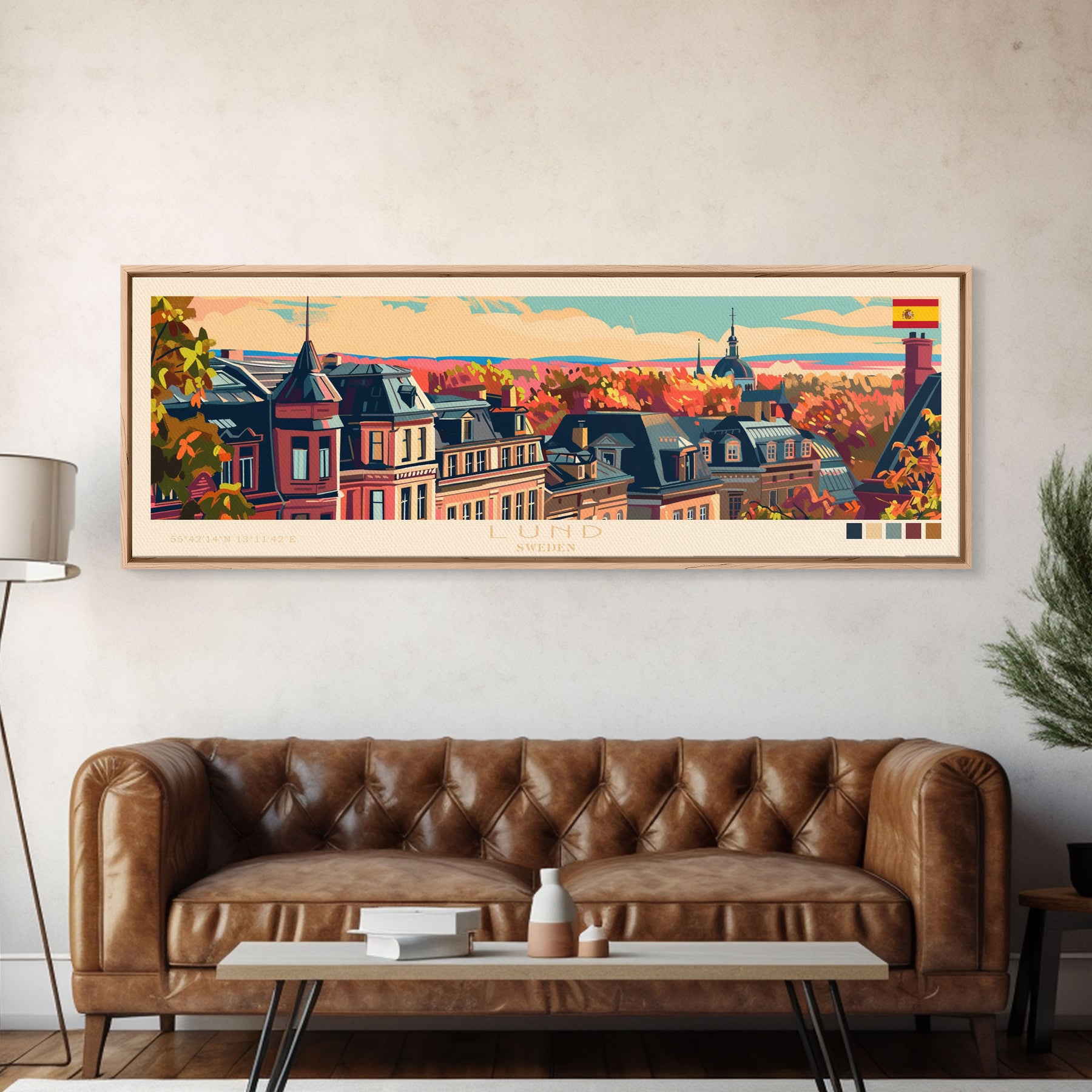 Lund Sweden Travel Print Wall Art, Panoramic City Art, Travel Art, Wall Decor, Vacation Gift, Framed Canvas Print Or Metal Art