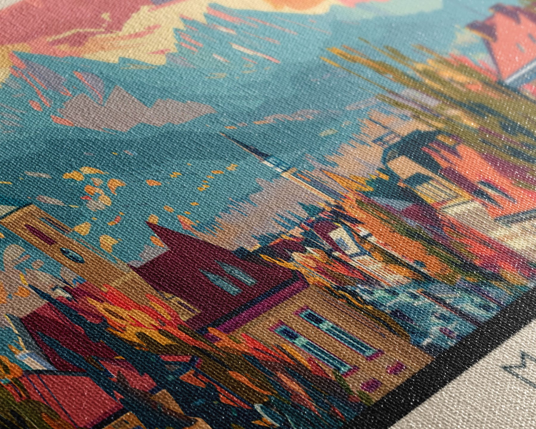 Most of our canvases are made in the USA, with the exception of canvases ordered with the light oak unstained frames, and any large canvases (24x48, 30x60, 16x48 and 20x60) ordered WITH a frame. These are temporarily made in and shipped from Europe, while we try to find a more consistent supplier in the USA.