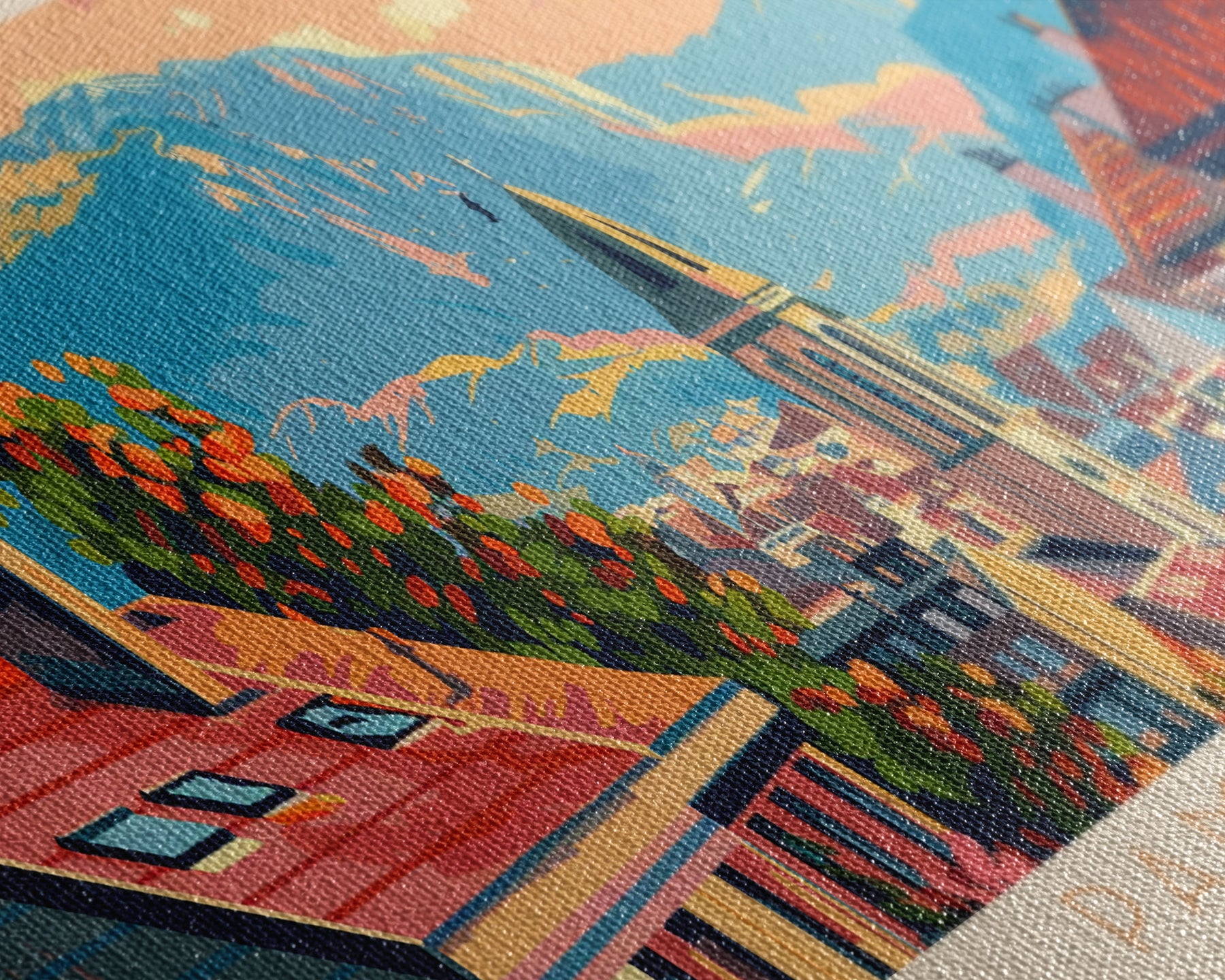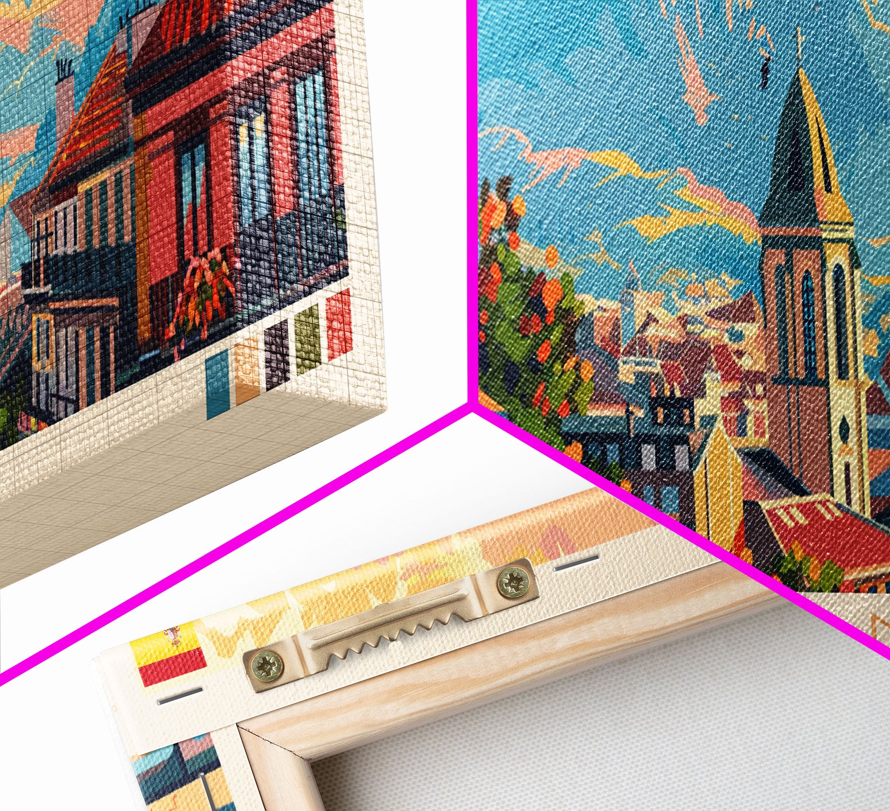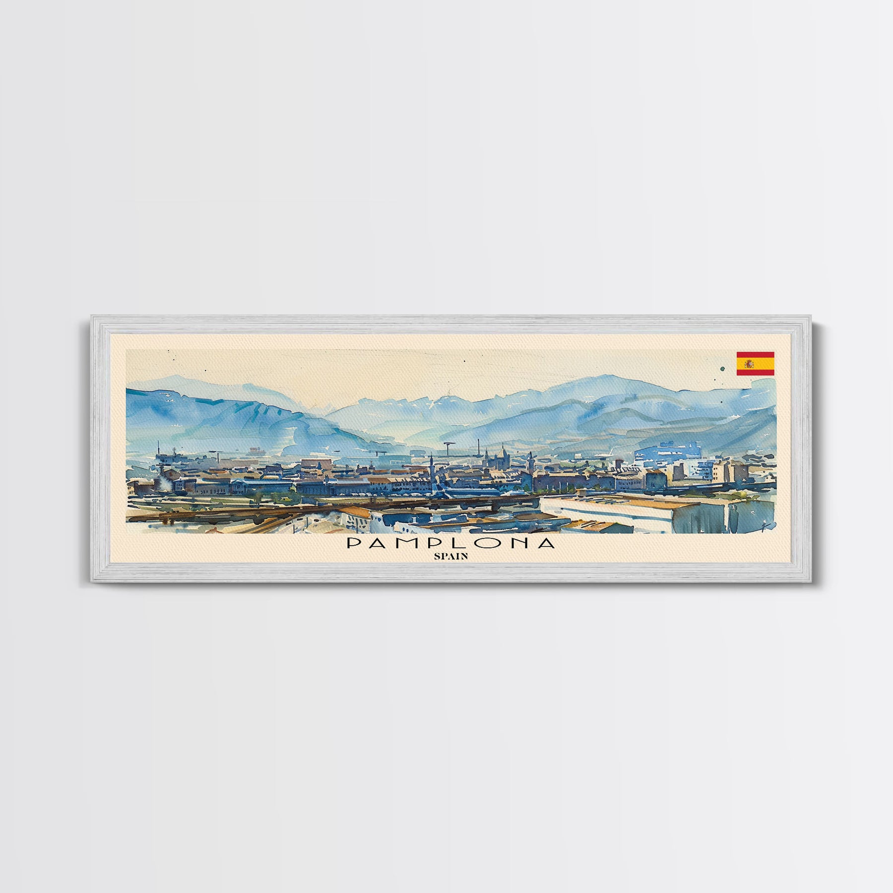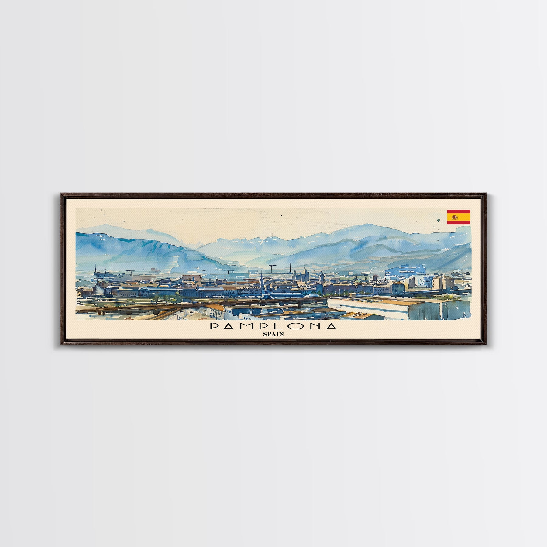 Pamplona Spain Panoramic Travel Poster, Framed Canvas Print or Metal Wall Art, Travel Art, Home Decor, Panoramic Painting, Midcentury Art