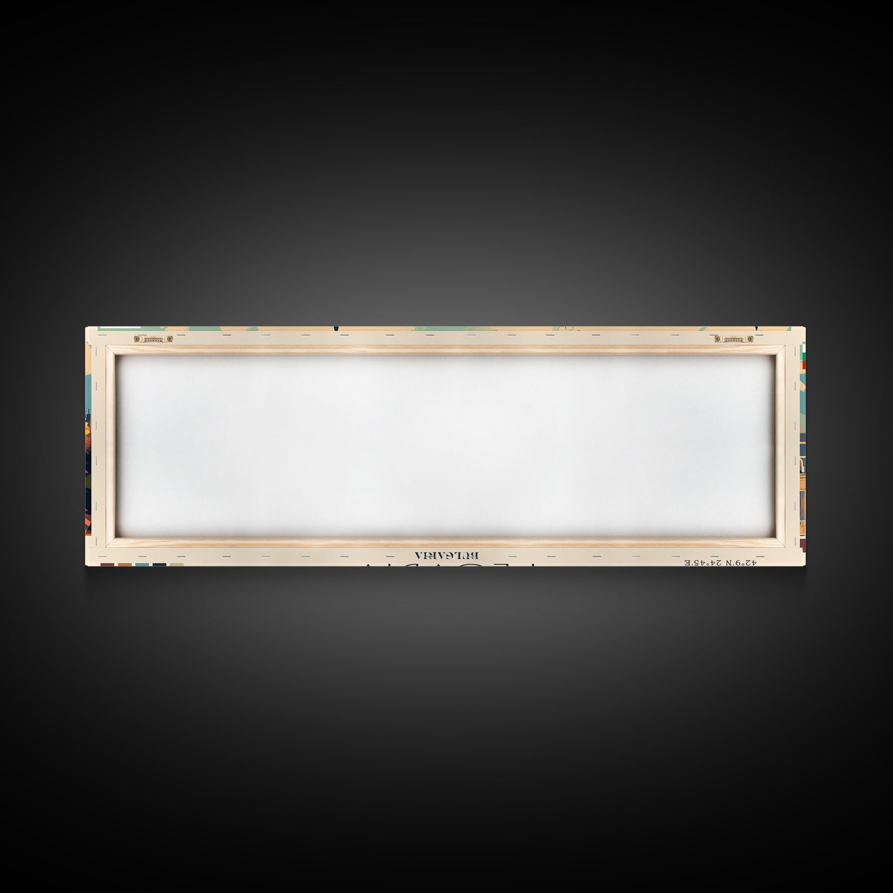 Most of our canvases are made in the USA, with the exception of canvases ordered with the light oak unstained frames, and any large canvases (24x48, 30x60, 16x48 and 20x60) ordered WITH a frame. These are temporarily made in and shipped from Europe, while we try to find a more consistent supplier in the USA.