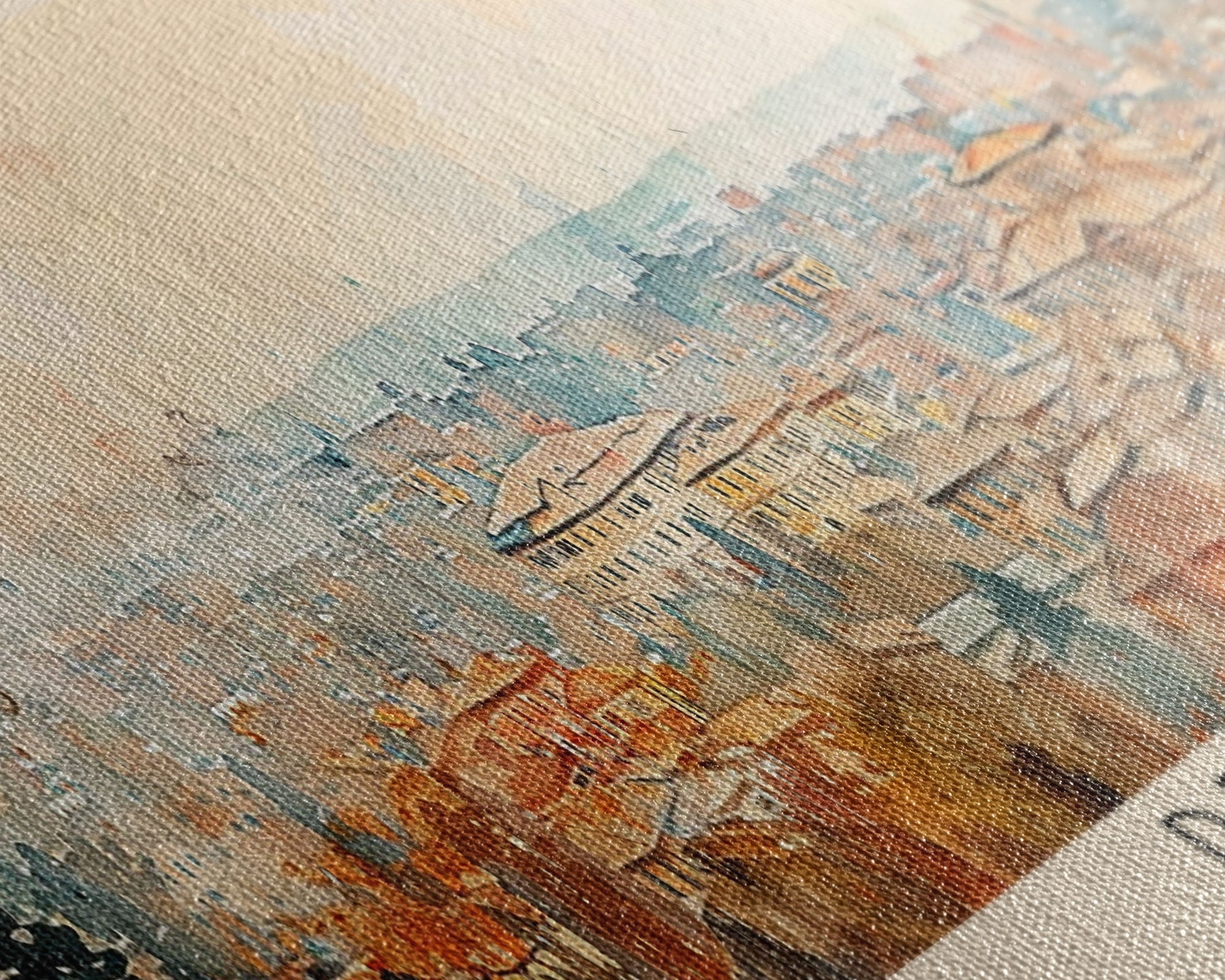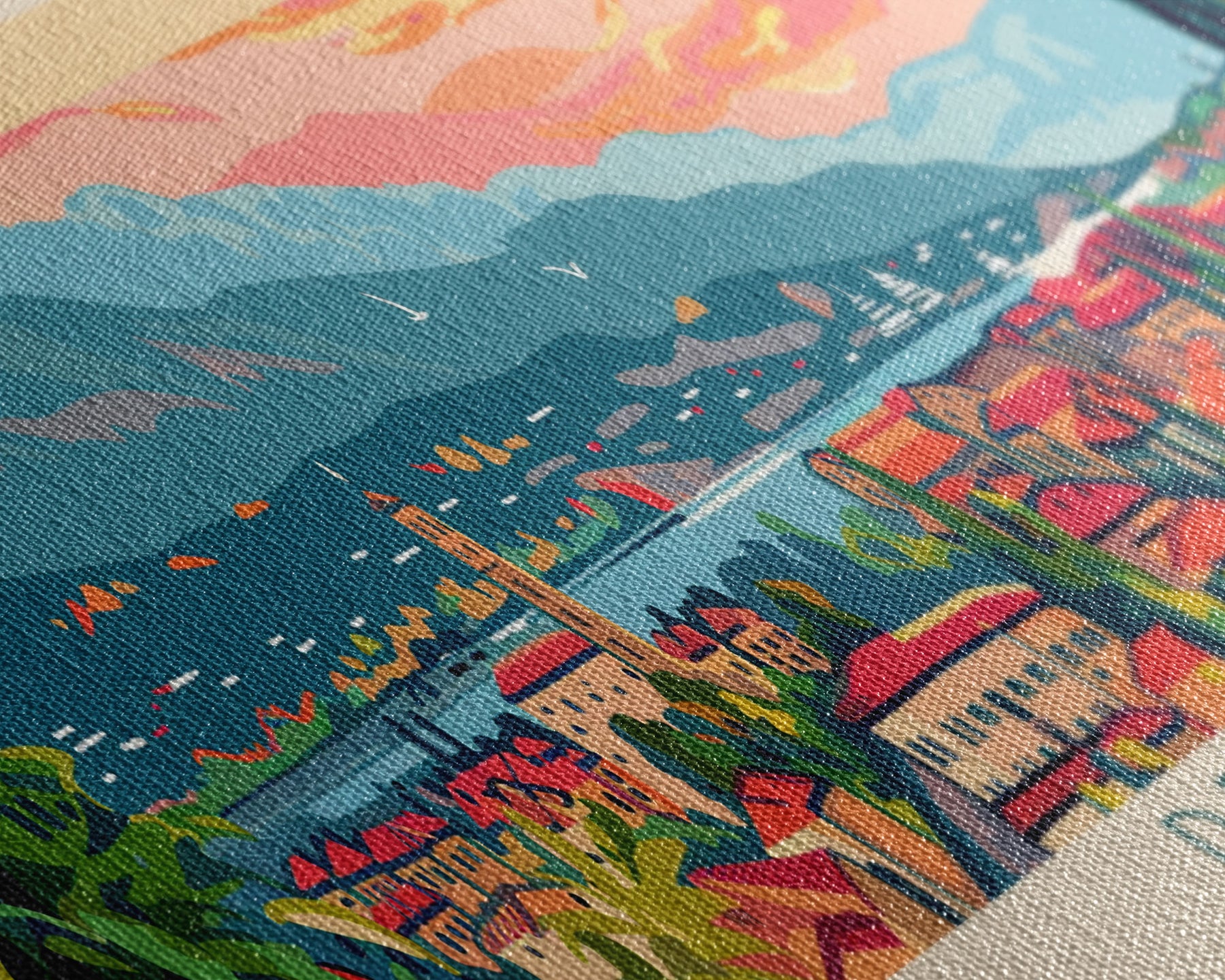 Most of our canvases are made in the USA, with the exception of canvases ordered with the light oak unstained frames, and any large canvases (24x48, 30x60, 16x48 and 20x60) ordered WITH a frame. These are temporarily made in and shipped from Europe, while we try to find a more consistent supplier in the USA.