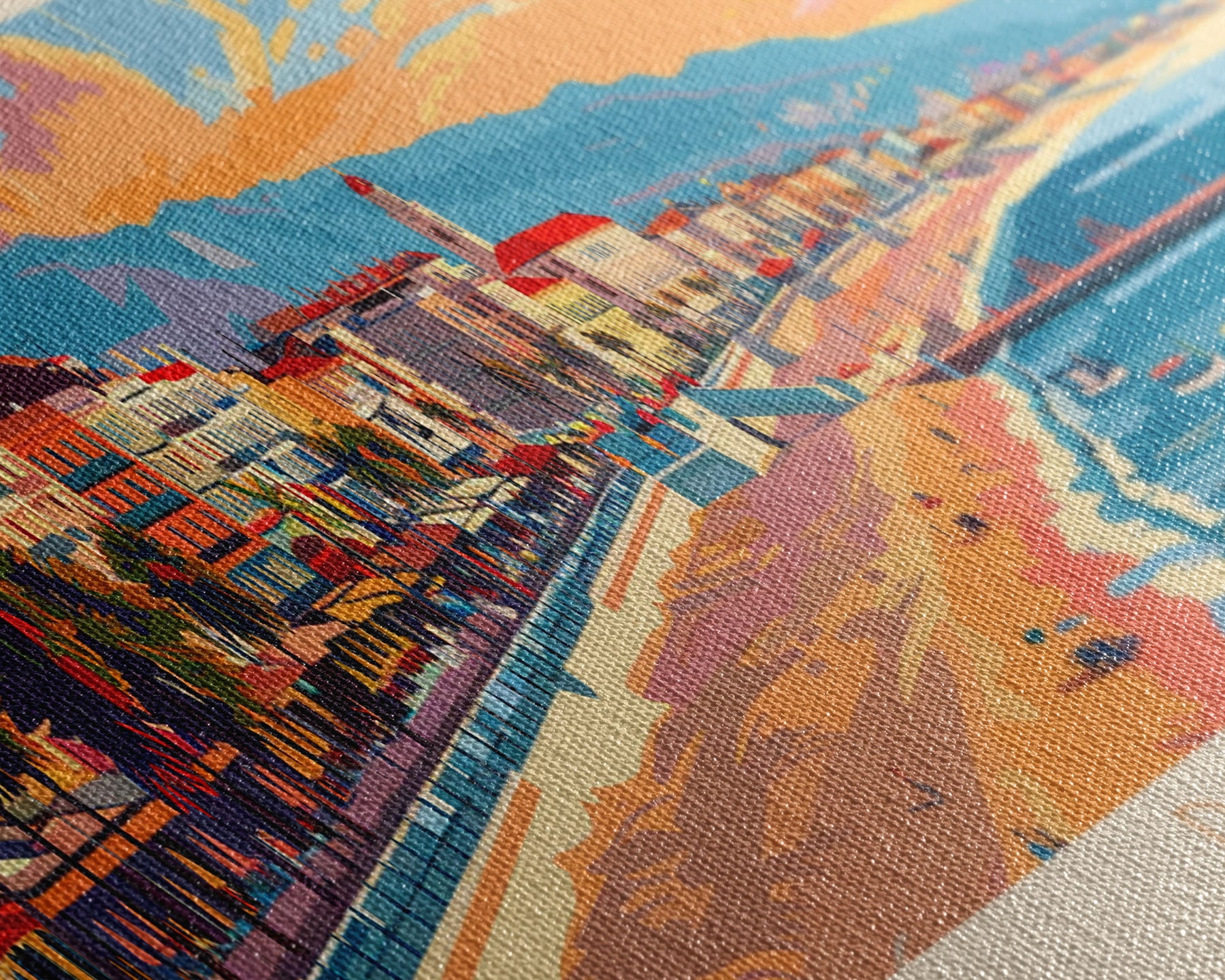 Most of our canvases are made in the USA, with the exception of canvases ordered with the light oak unstained frames, and any large canvases (24x48, 30x60, 16x48 and 20x60) ordered WITH a frame. These are temporarily made in and shipped from Europe, while we try to find a more consistent supplier in the USA.