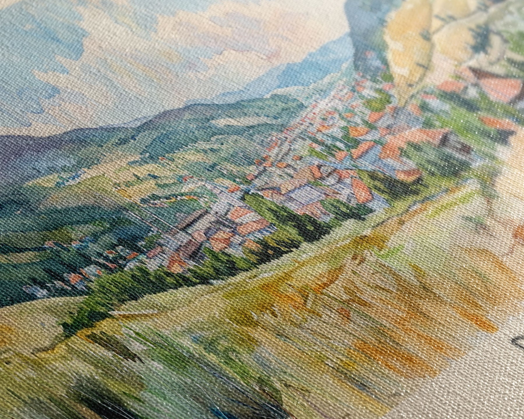 Most of our canvases are made in the USA, with the exception of canvases ordered with the light oak unstained frames, and any large canvases (24x48, 30x60, 16x48 and 20x60) ordered WITH a frame. These are temporarily made in and shipped from Europe, while we try to find a more consistent supplier in the USA.