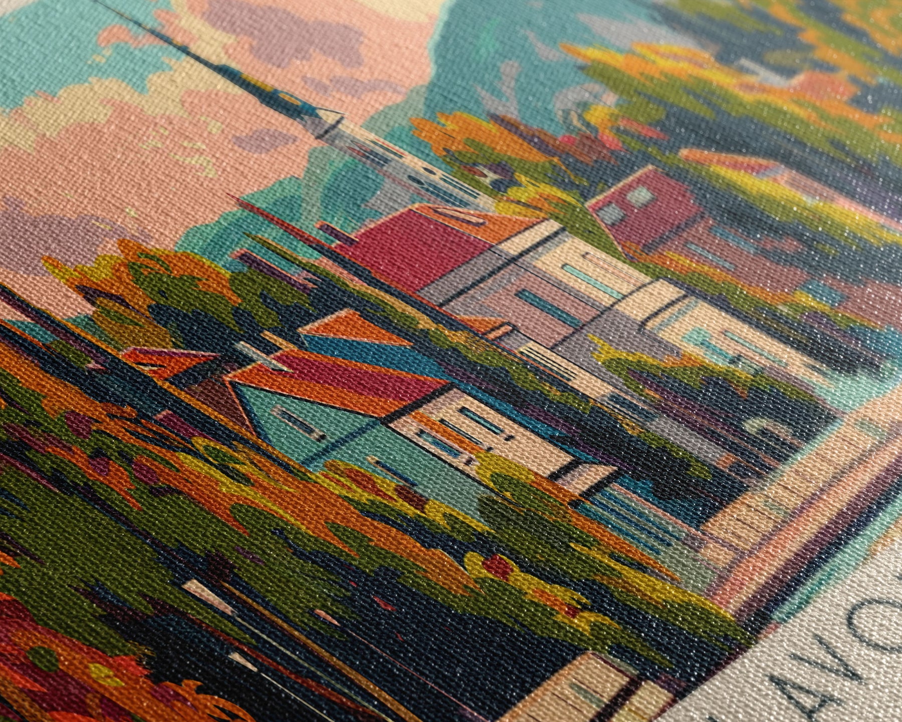 Most of our canvases are made in the USA, with the exception of canvases ordered with the light oak unstained frames, and any large canvases (24x48, 30x60, 16x48 and 20x60) ordered WITH a frame. These are temporarily made in and shipped from Europe, while we try to find a more consistent supplier in the USA.