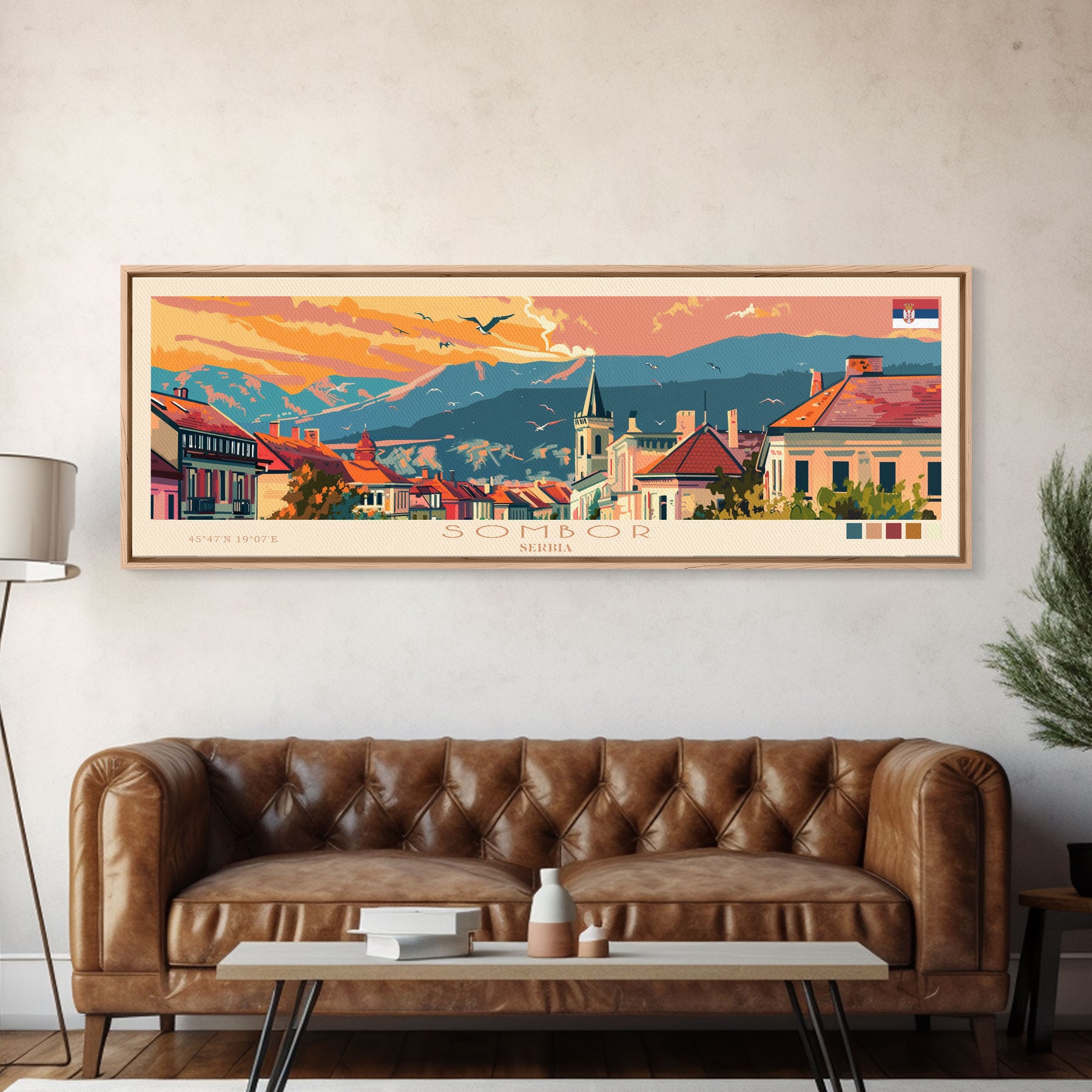 Sombor Serbia Travel Print Wall Art, Panoramic City Art, Travel Art, Wall Decor, Vacation Gift, Framed Canvas Print Or Metal Art
