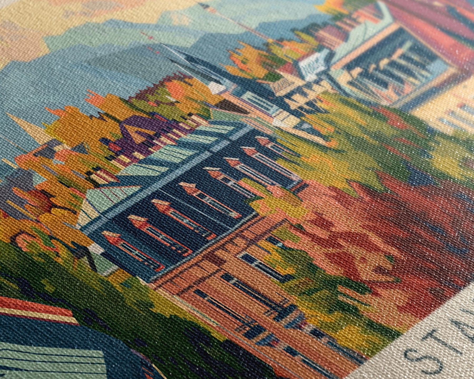 Most of our canvases are made in the USA, with the exception of canvases ordered with the light oak unstained frames, and any large canvases (24x48, 30x60, 16x48 and 20x60) ordered WITH a frame. These are temporarily made in and shipped from Europe, while we try to find a more consistent supplier in the USA.