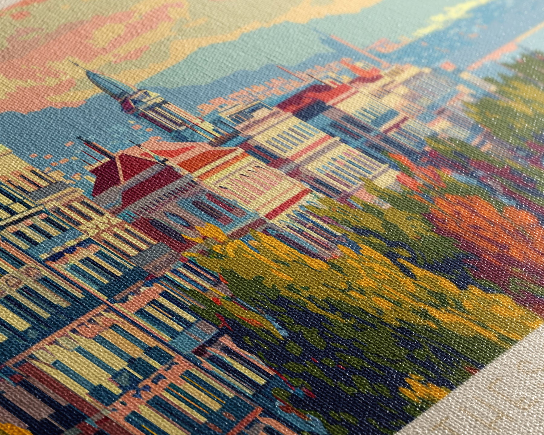 Most of our canvases are made in the USA, with the exception of canvases ordered with the light oak unstained frames, and any large canvases (24x48, 30x60, 16x48 and 20x60) ordered WITH a frame. These are temporarily made in and shipped from Europe, while we try to find a more consistent supplier in the USA.