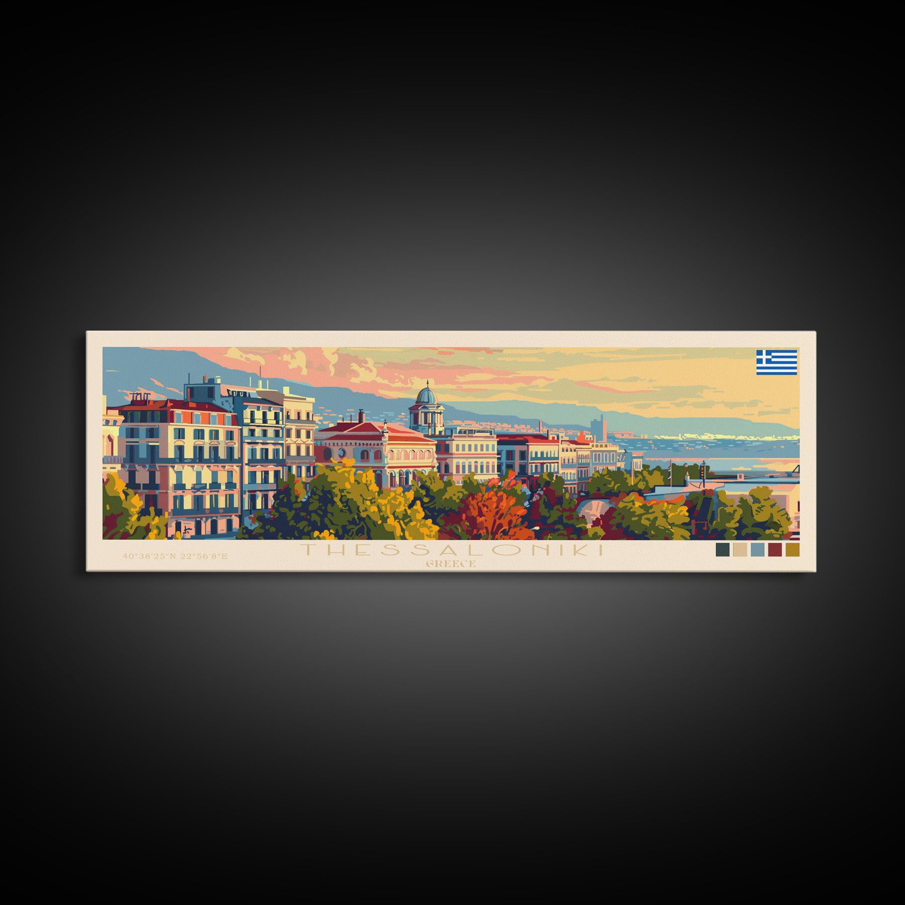 Thessaloniki Greece Travel Art, City Art, Framed Canvas Print or Metal Wall Art, Europe Travel Poster, Panoramic Wall Art, Extra Wide Wall Art