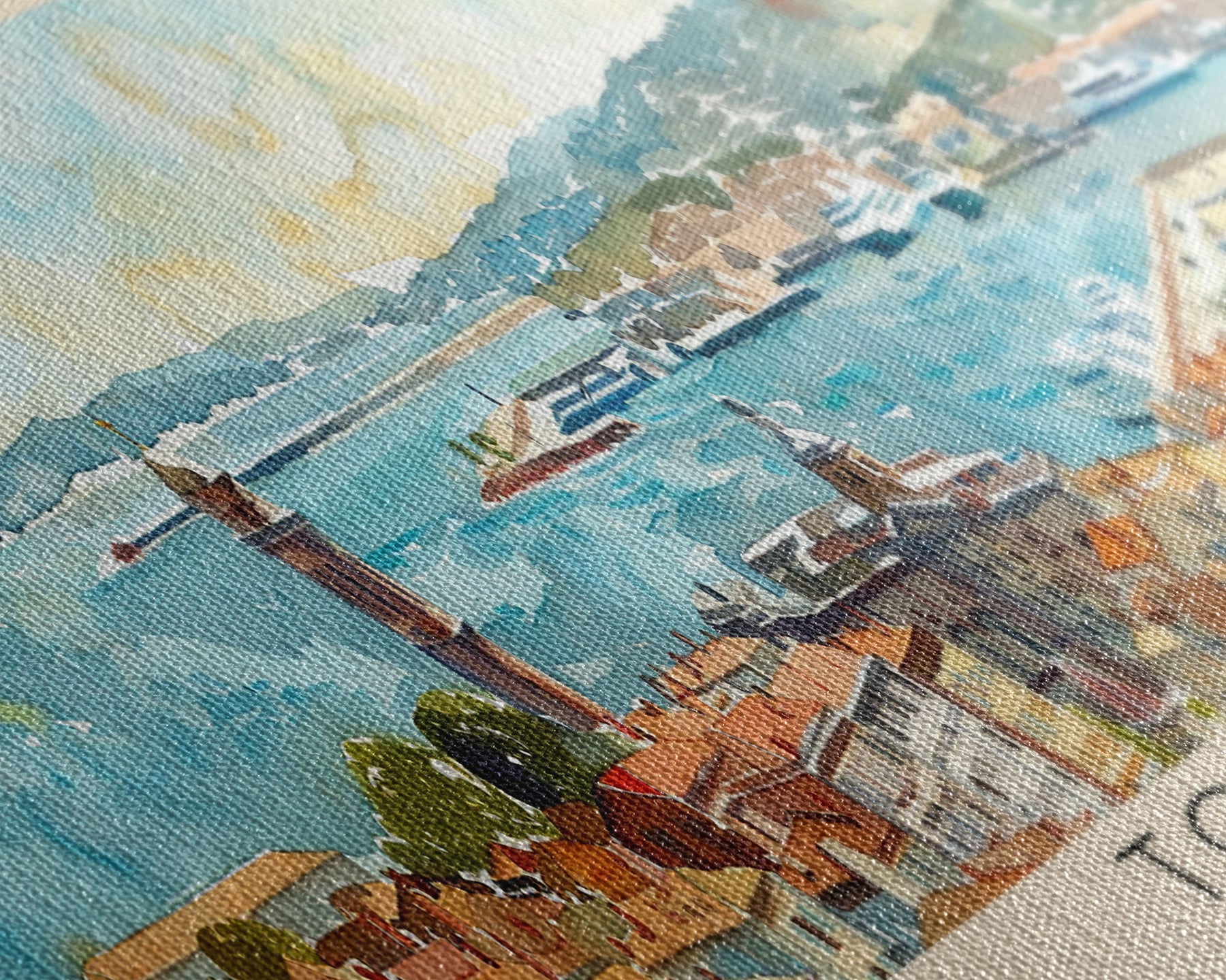 Most of our canvases are made in the USA, with the exception of canvases ordered with the light oak unstained frames, and any large canvases (24x48, 30x60, 16x48 and 20x60) ordered WITH a frame. These are temporarily made in and shipped from Europe, while we try to find a more consistent supplier in the USA.