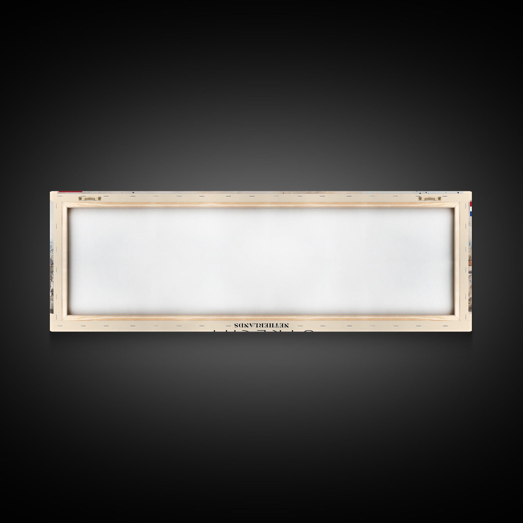 Most of our canvases are made in the USA, with the exception of canvases ordered with the light oak unstained frames, and any large canvases (24x48, 30x60, 16x48 and 20x60) ordered WITH a frame. These are temporarily made in and shipped from Europe, while we try to find a more consistent supplier in the USA.