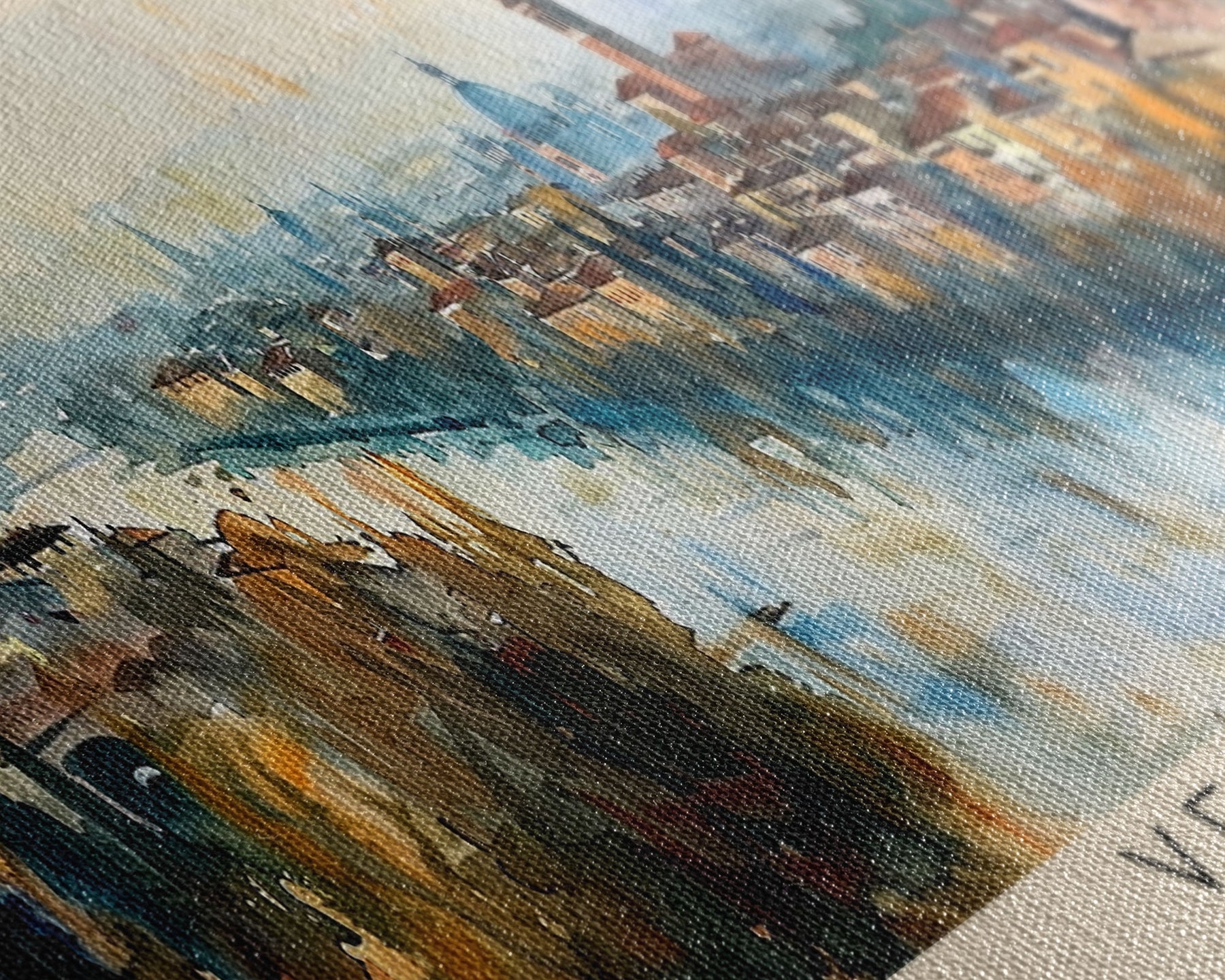 Most of our canvases are made in the USA, with the exception of canvases ordered with the light oak unstained frames, and any large canvases (24x48, 30x60, 16x48 and 20x60) ordered WITH a frame. These are temporarily made in and shipped from Europe, while we try to find a more consistent supplier in the USA.