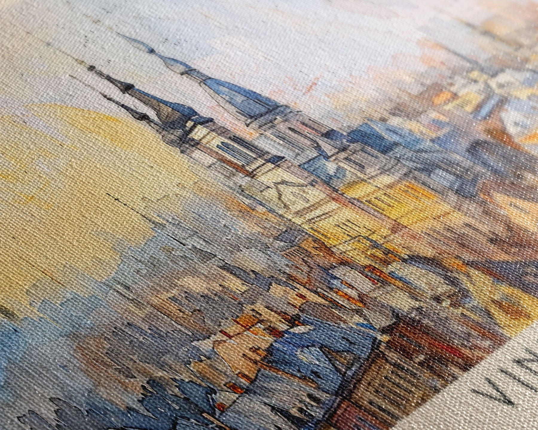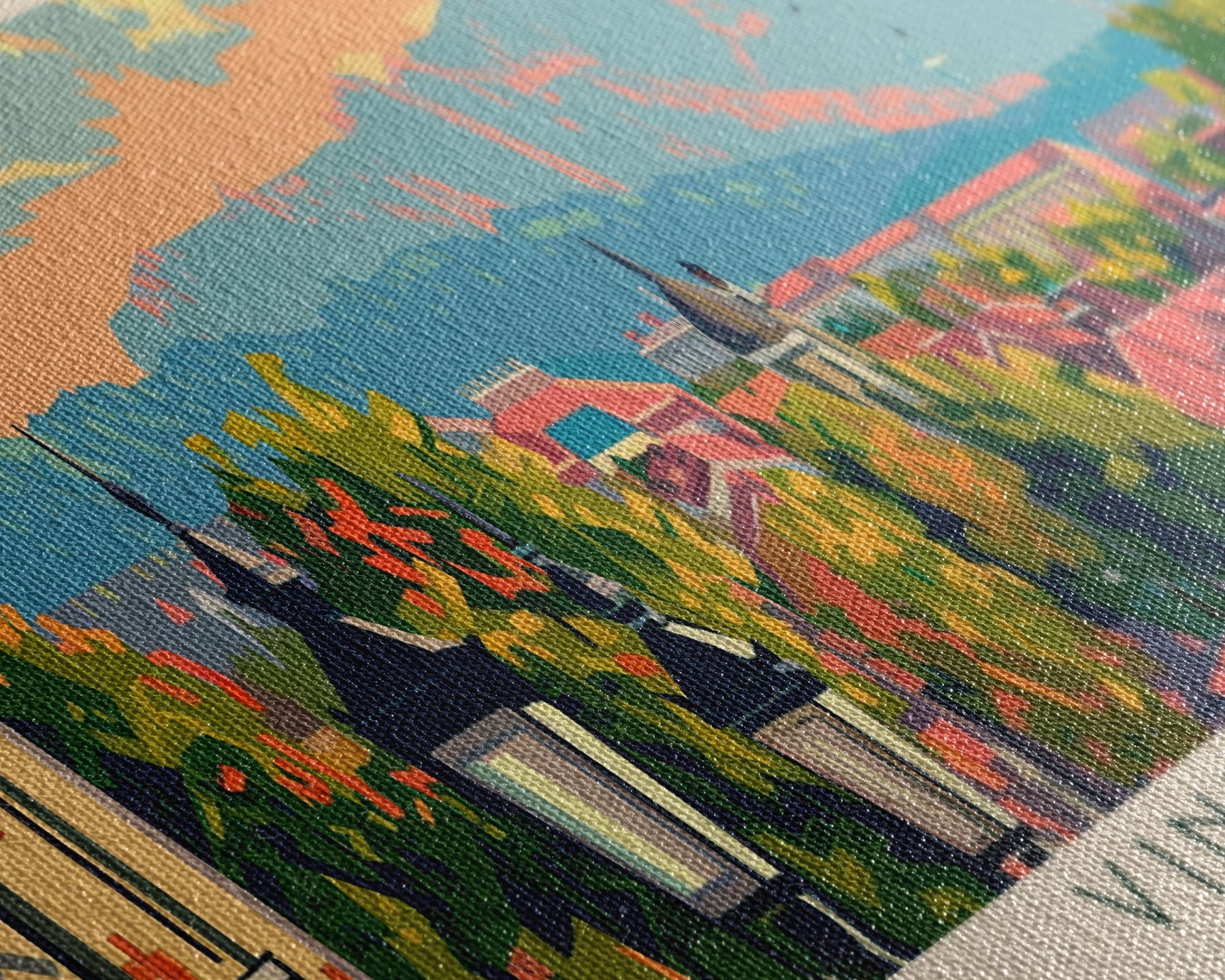 Most of our canvases are made in the USA, with the exception of canvases ordered with the light oak unstained frames, and any large canvases (24x48, 30x60, 16x48 and 20x60) ordered WITH a frame. These are temporarily made in and shipped from Europe, while we try to find a more consistent supplier in the USA.