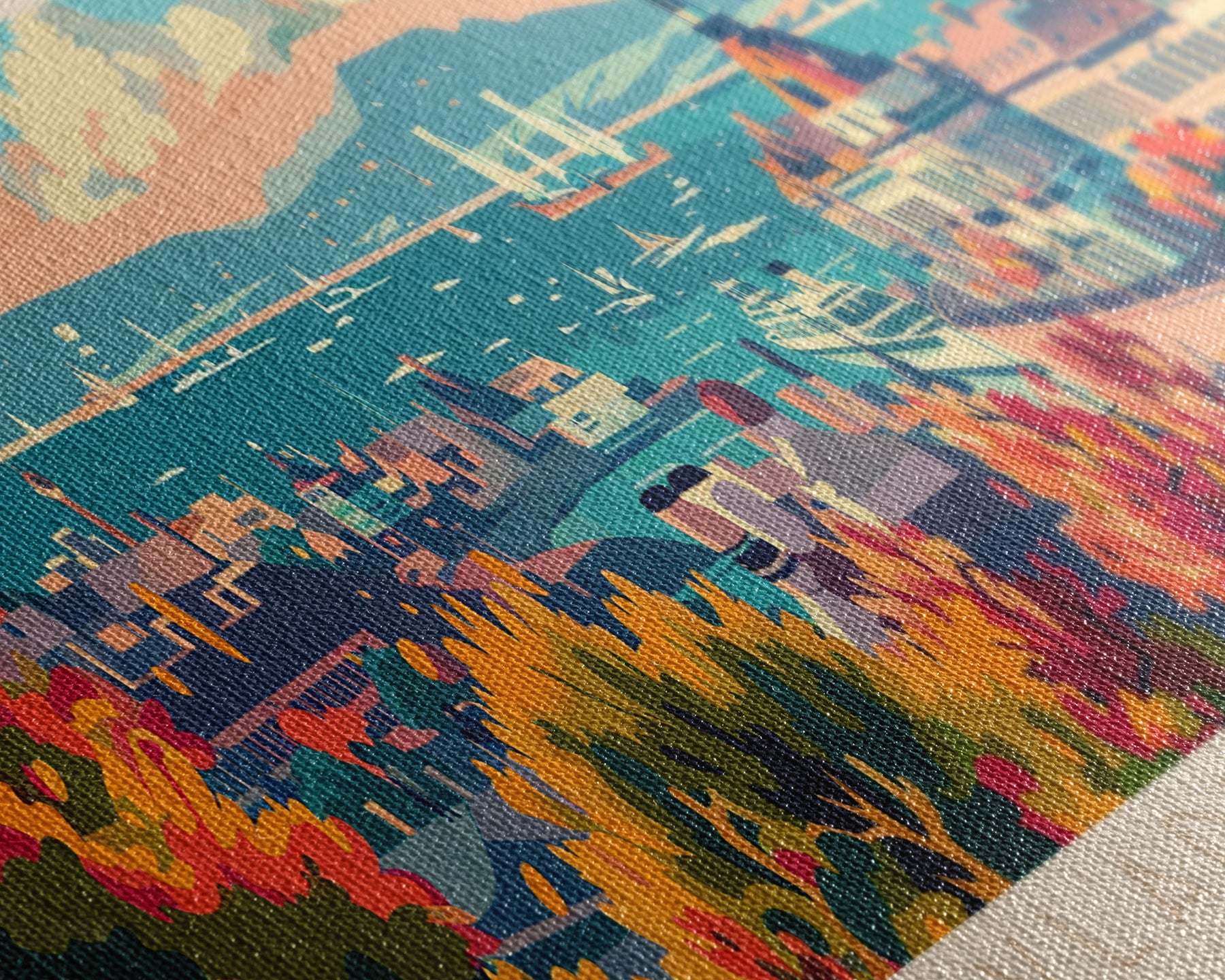 Most of our canvases are made in the USA, with the exception of canvases ordered with the light oak unstained frames, and any large canvases (24x48, 30x60, 16x48 and 20x60) ordered WITH a frame. These are temporarily made in and shipped from Europe, while we try to find a more consistent supplier in the USA.