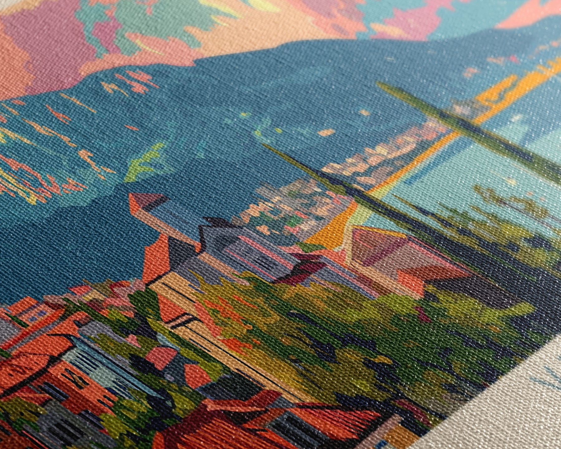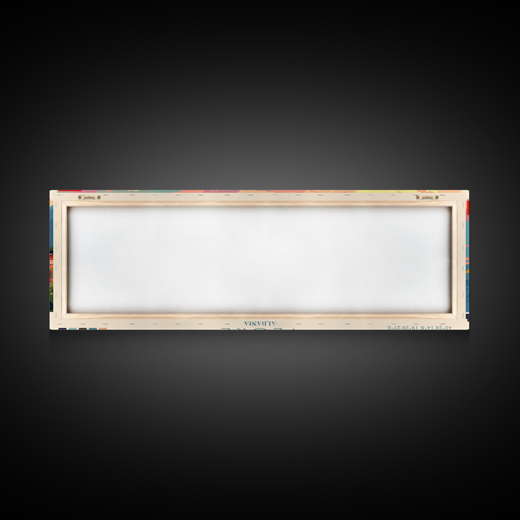 Most of our canvases are made in the USA, with the exception of canvases ordered with the light oak unstained frames, and any large canvases (24x48, 30x60, 16x48 and 20x60) ordered WITH a frame. These are temporarily made in and shipped from Europe, while we try to find a more consistent supplier in the USA.