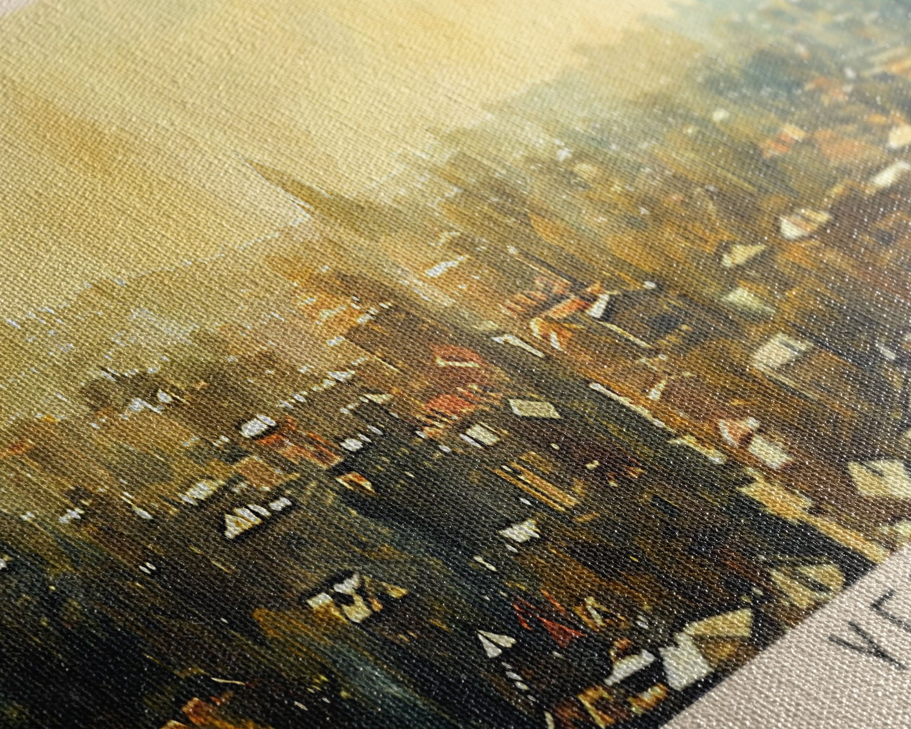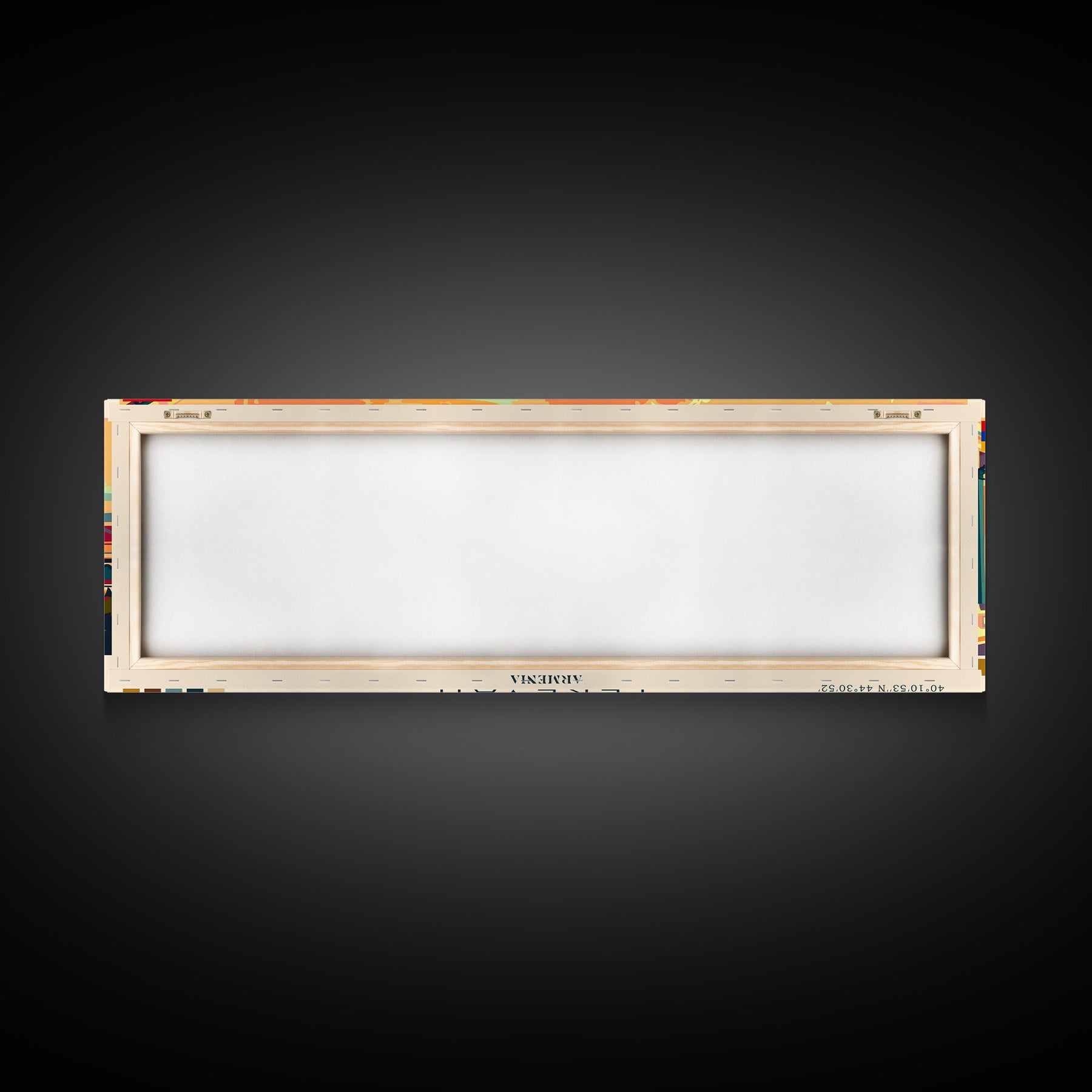 Most of our canvases are made in the USA, with the exception of canvases ordered with the light oak unstained frames, and any large canvases (24x48, 30x60, 16x48 and 20x60) ordered WITH a frame. These are temporarily made in and shipped from Europe, while we try to find a more consistent supplier in the USA.