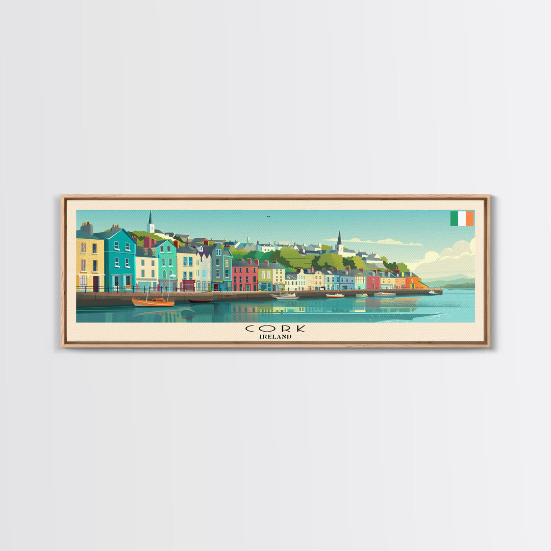 Cork Ireland Panoramic Travel Poster, Framed Canvas Print or Metal Wall Art, Travel Art, Home Decor, Panoramic Painting, Midcentury Art