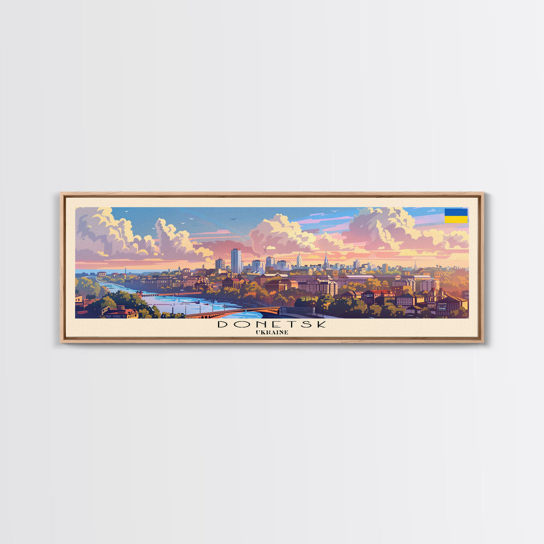 Donetsk Ukraine Panoramic Travel Poster, Framed Canvas Print or Metal Wall Art, Travel Art, Home Decor, Panoramic Painting, Midcentury Art
