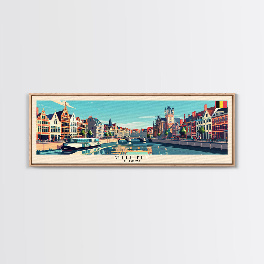 Ghent Belgium Wall Art, Panoramic Travel Poster, Panoramic Framed Canvas Print, City Wall Art, Wall Hanging Home Decor, Travel Art