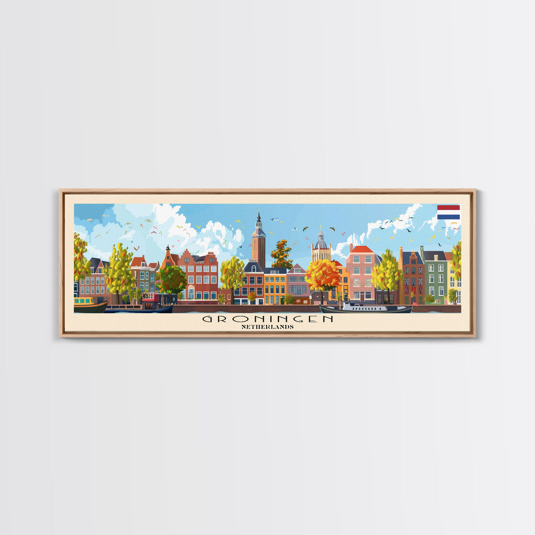 Groningen Netherlands Travel Art, City Art, Framed Canvas Print or Metal Wall Art, Europe Travel Poster, Panoramic Wall Art, Extra Wide Wall Art