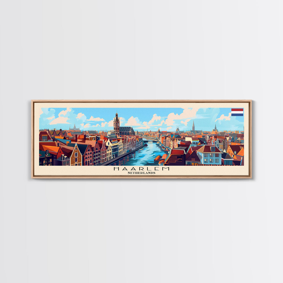 Haarlem Netherlands Travel Art, City Art, Framed Canvas Print or Metal Wall Art, Europe Travel Poster, Panoramic Wall Art, Extra Wide Wall Art