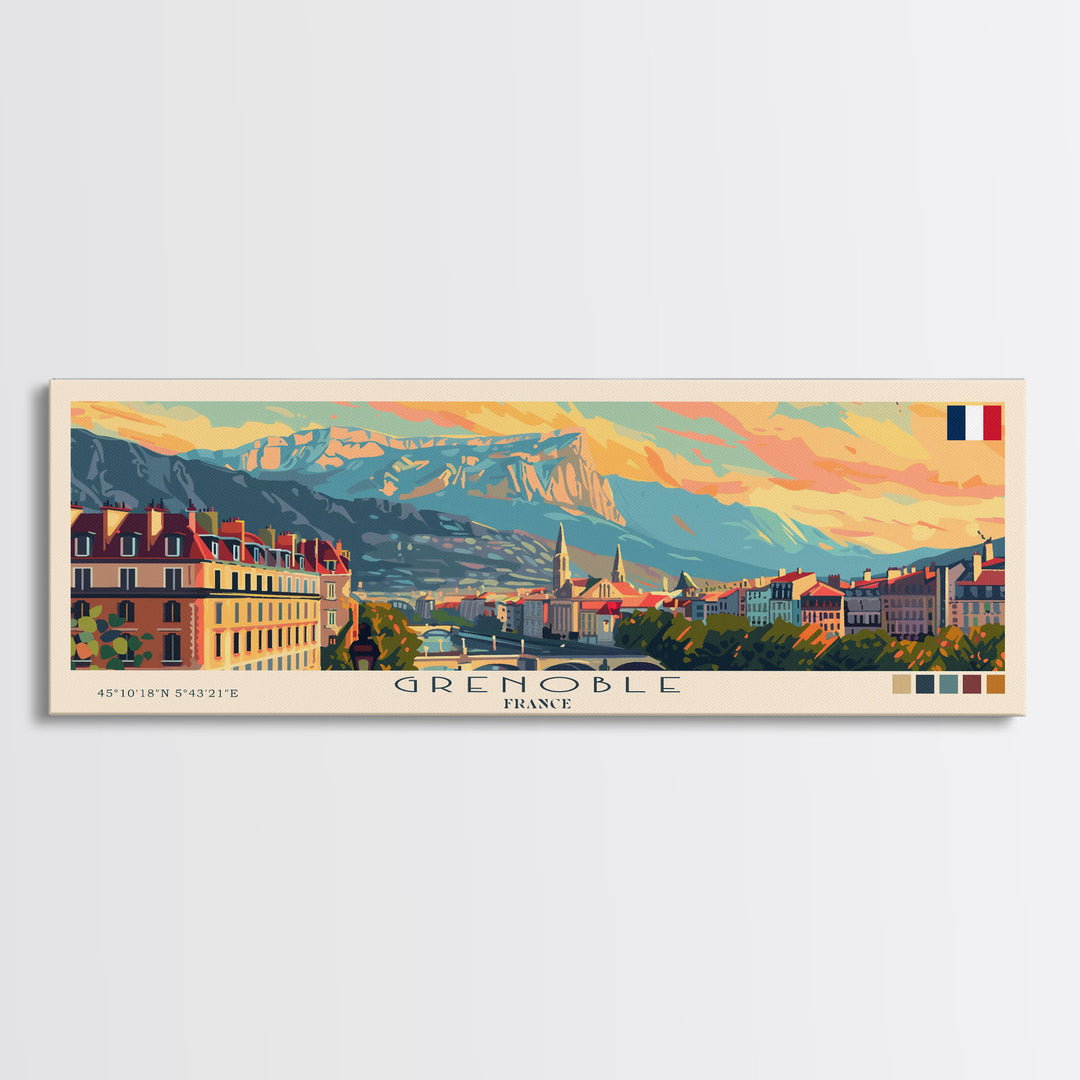 Grenoble France Travel Print Wall Art, Panoramic City Art, Travel Art, Wall Decor, Vacation Gift, Framed Canvas Print Or Metal Art