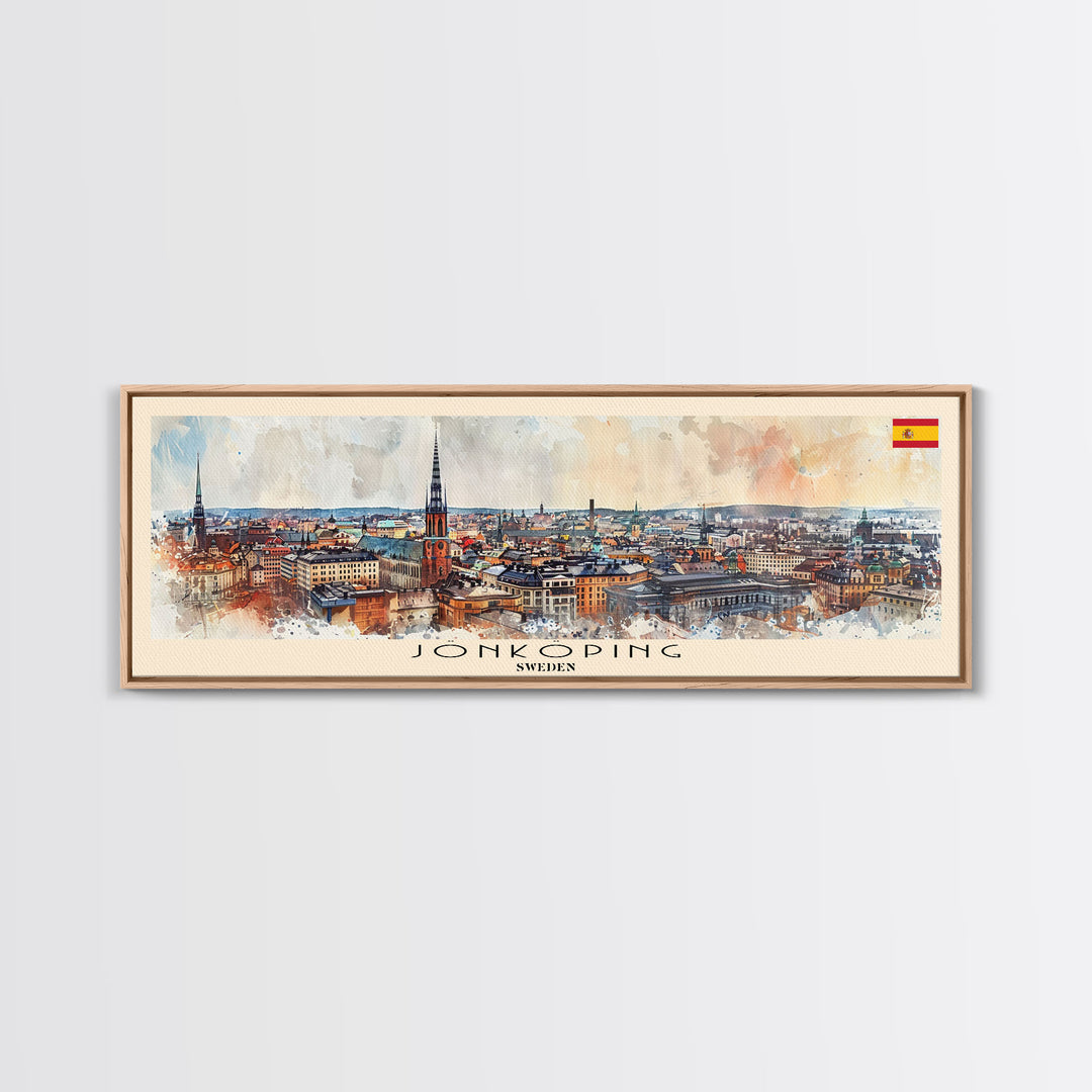 Jonkoping Sweden Travel Print Wall Art, Panoramic City Art, Travel Art, Wall Decor, Vacation Gift, Framed Canvas Print Or Metal Art