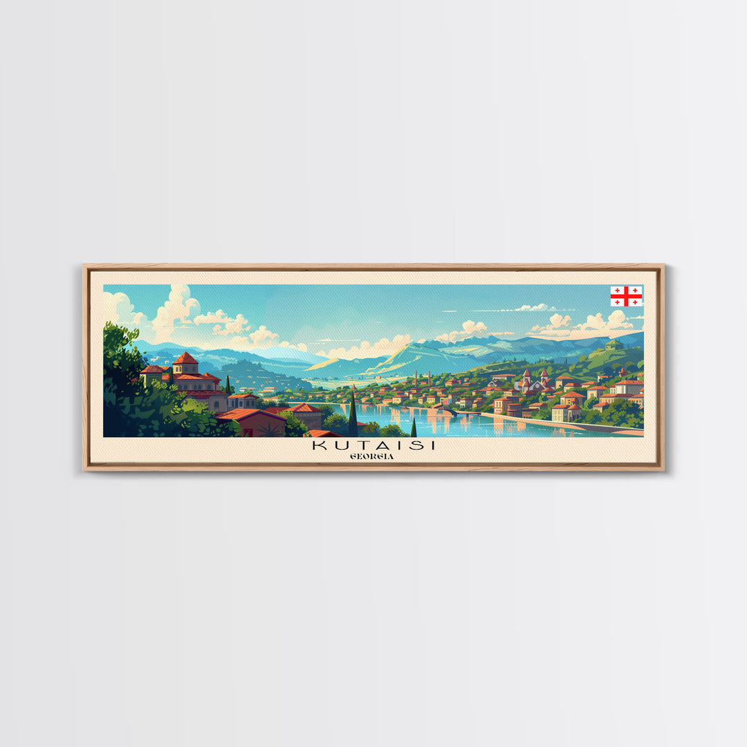 Kutaisi Georgia Panoramic Travel Poster, Framed Canvas Print or Metal Wall Art, Travel Art, Home Decor, Panoramic Painting, Midcentury Art