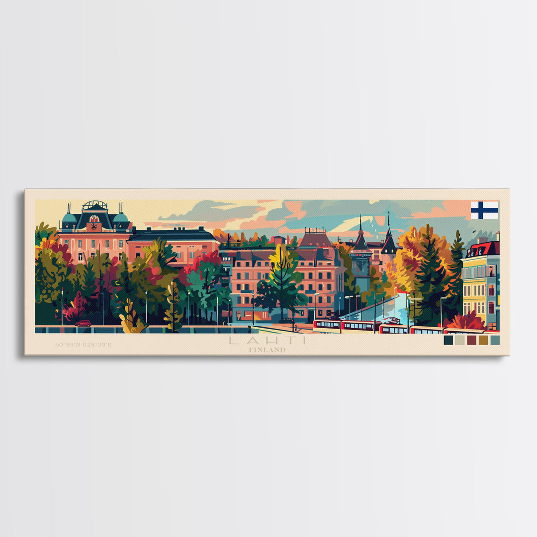 Lahti Finland Panoramic Travel Poster, Framed Canvas Print or Metal Wall Art, Travel Art, Home Decor, Panoramic Painting, Midcentury Art