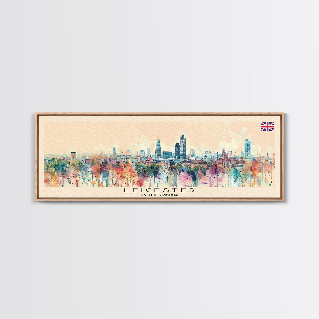 Leicester United Kingdom Travel Print Wall Art, Panoramic City Art, Travel Art, Wall Decor, Vacation Gift, Framed Canvas Print Or Metal Art