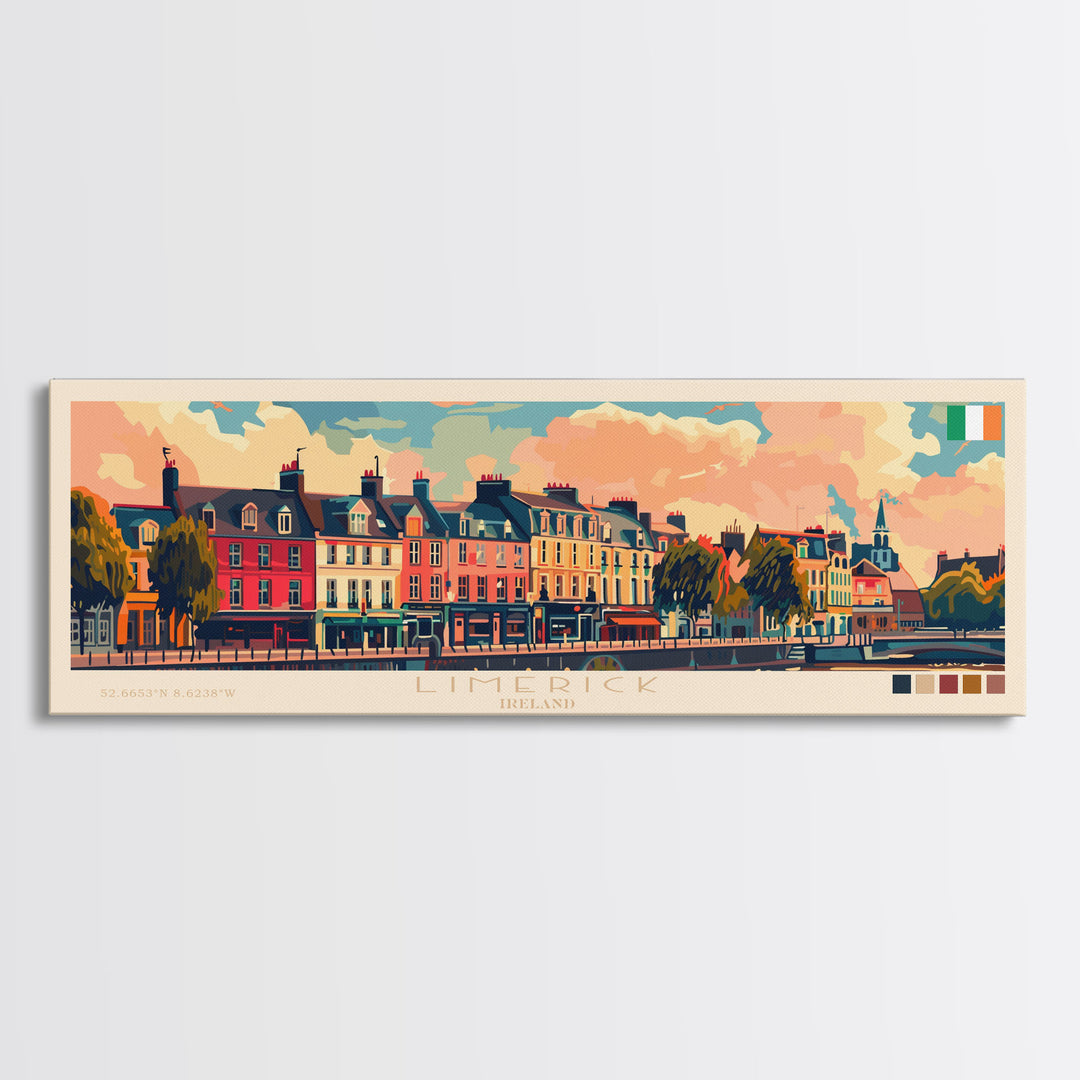 Limerick Ireland Travel Print Wall Art, Panoramic City Art, Travel Art, Wall Decor, Vacation Gift, Framed Canvas Print Or Metal Art