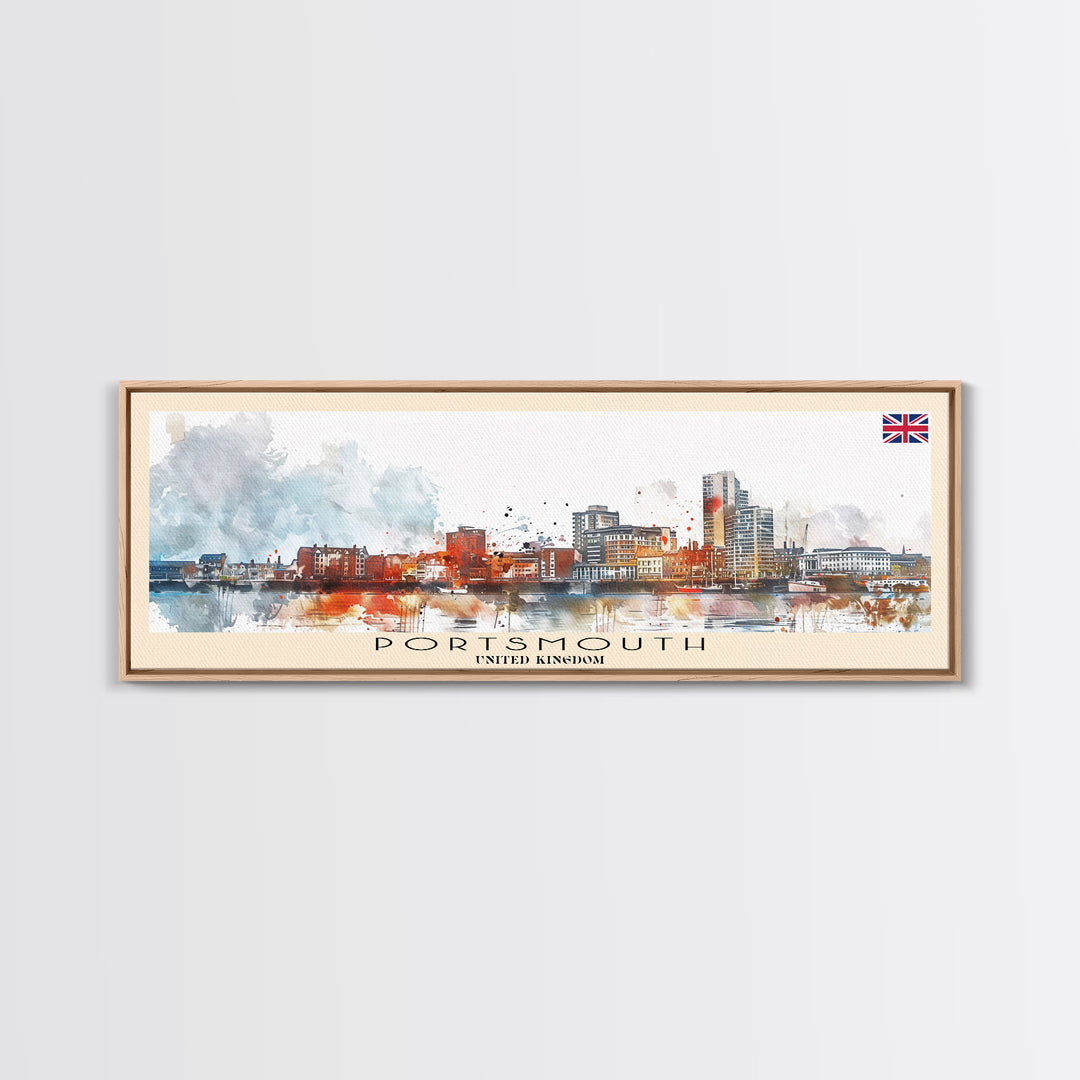 Portsmouth United Kingdom Wall Art, Panoramic Travel Poster, Panoramic Framed Canvas Print, City Wall Art, Wall Hanging Home Decor, Travel Art