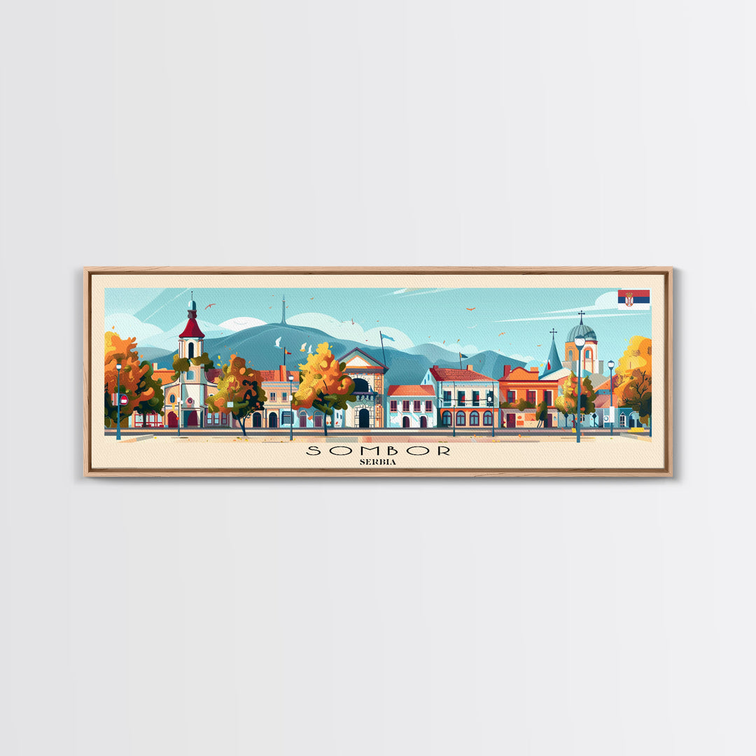 Sombor Serbia Travel Print Wall Art, Panoramic City Art, Travel Art, Wall Decor, Vacation Gift, Framed Canvas Print Or Metal Art