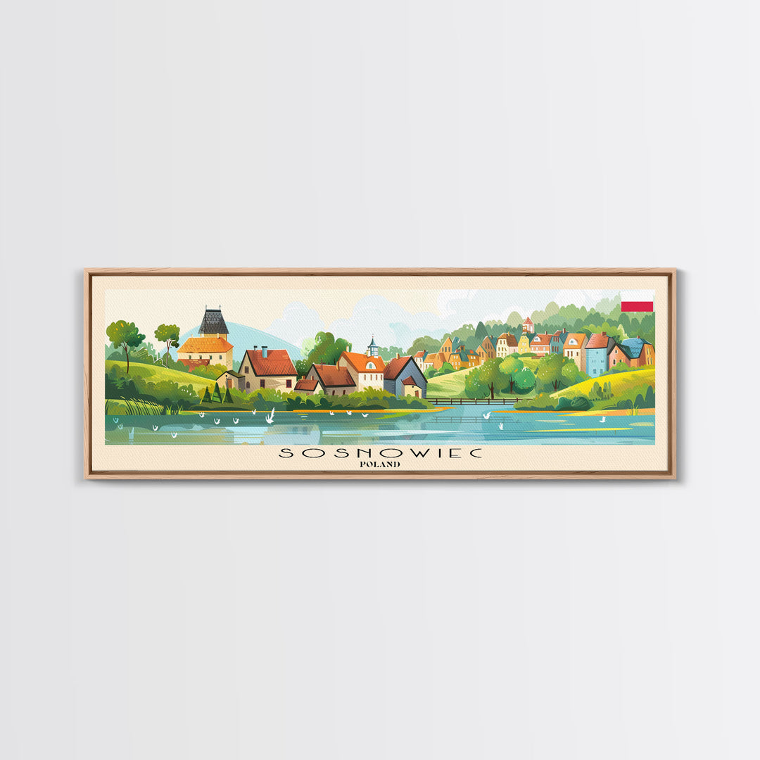 Sosnowiec Poland Panoramic Travel Poster, Framed Canvas Print or Metal Wall Art, Travel Art, Home Decor, Panoramic Painting, Midcentury Art