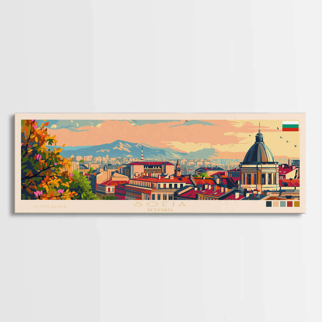 Sofia Bulgaria Wall Art, Panoramic Travel Poster, Panoramic Framed Canvas Print, City Wall Art, Wall Hanging Home Decor, Travel Art