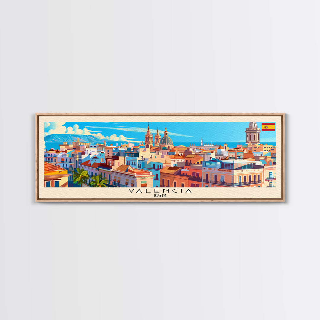 Valencia Spain Travel Art, City Art, Framed Canvas Print or Metal Wall Art, Europe Travel Poster, Panoramic Wall Art, Extra Wide Wall Art
