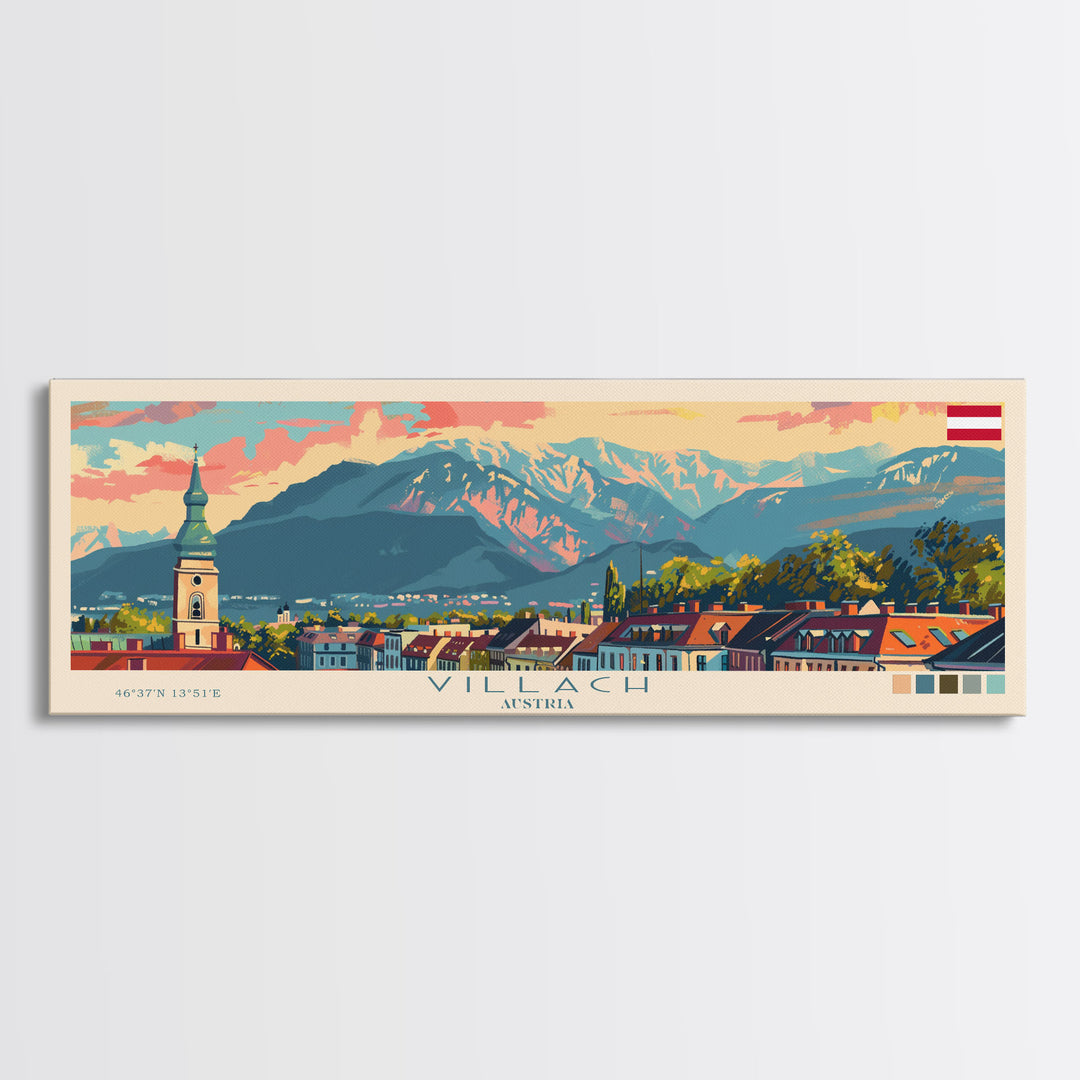 Villach Austria Travel Art, City Art, Framed Canvas Print or Metal Wall Art, Europe Travel Poster, Panoramic Wall Art, Extra Wide Wall Art
